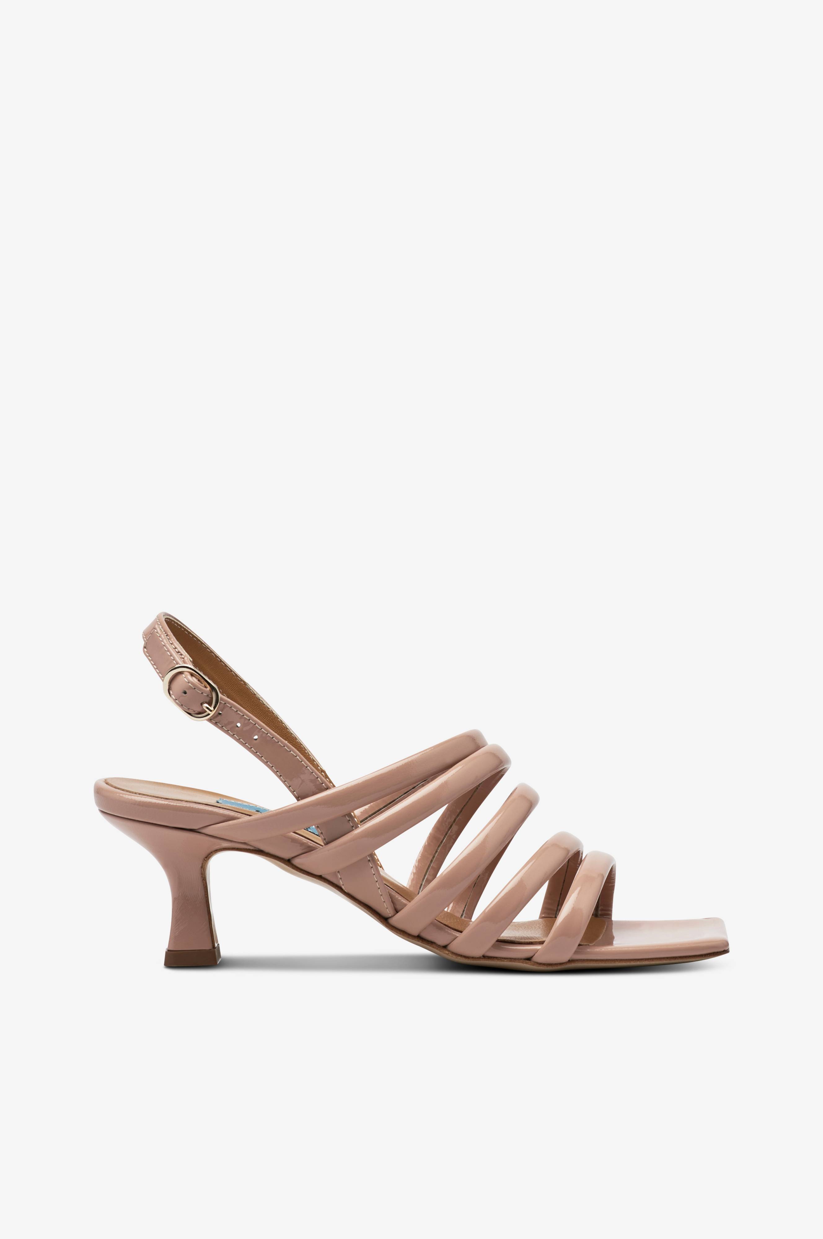 • Sandaletter i lackat läder• Fyrkantig tå• Flera remmar över foten• Spänne vid ankeln• Klackhöjd: 5,5 cm