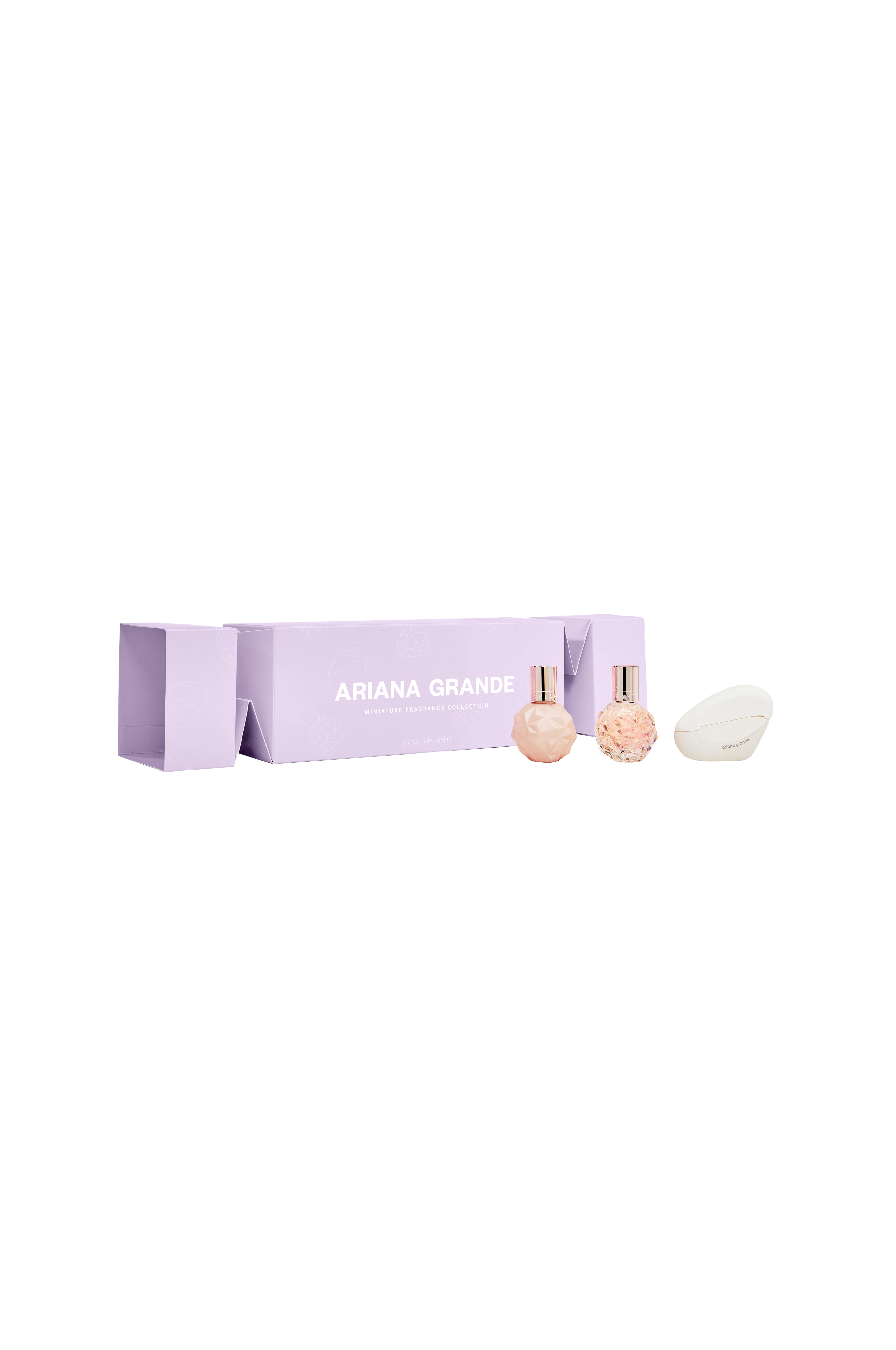 Deluxe Mini Cracker Set - den ultimata presenten till alla som älskar Ariana Grande och hennes dofter! Detta presentask innehåller tre av Ariana Grandes mest populära parfymer i miniformat. Deluxe Mini CrackerSet ser ut som ett bedårande julknäck, vilket gör det till den perfekta julklappen.
