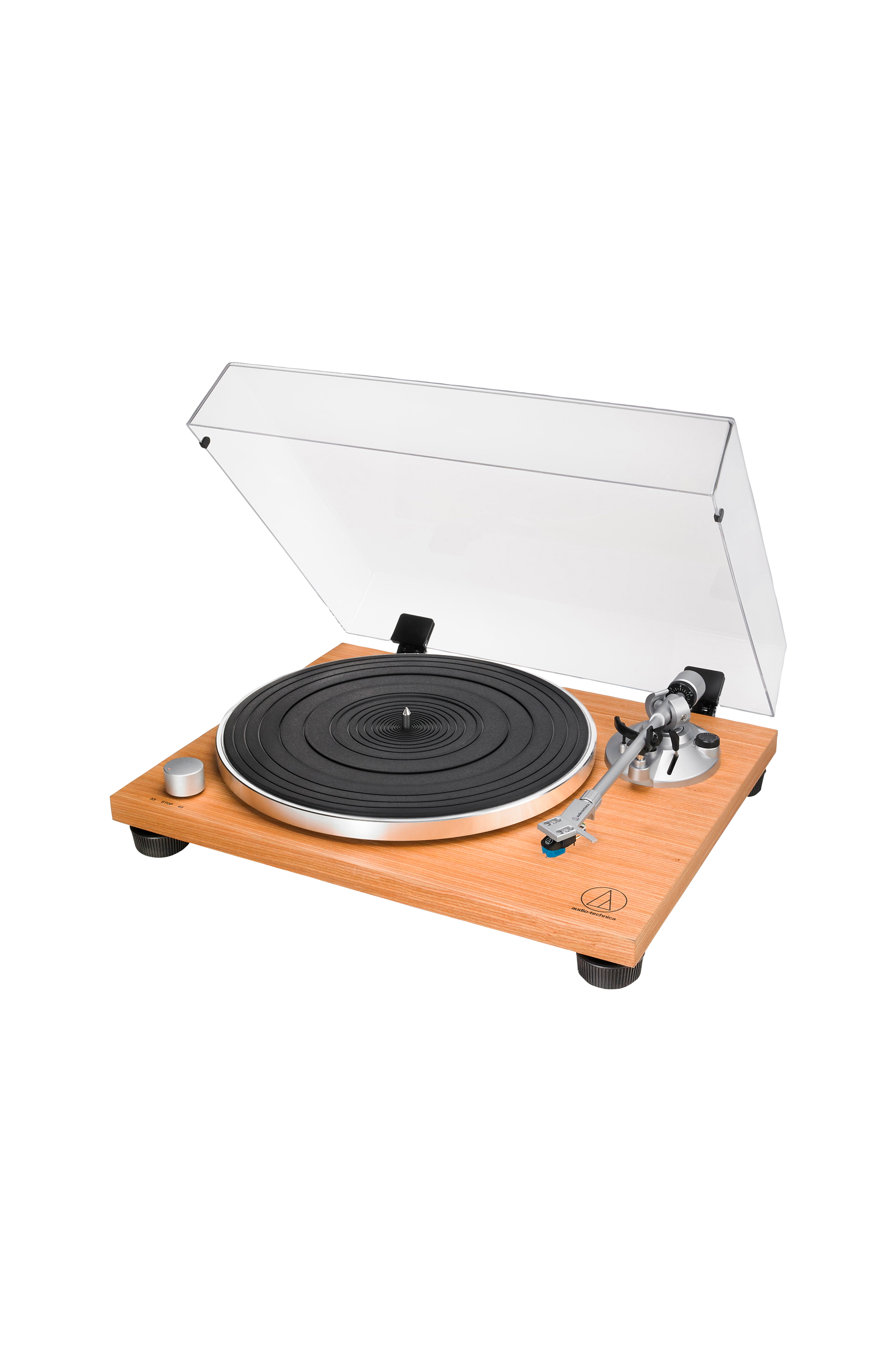AT-LPW30TK tar dig tillbaka i tiden med en lite mer klassisk design. Skivspelaren har en estetiskt tilltalande MDF plint med teakfaner och detaljer i silver. Själva tallriken är gjord utav pressgjuten aluminium och det följer även med en gummimatta. Allt detta hjälper skivspelaren att eliminera vibrationer och bättra stabilitet.