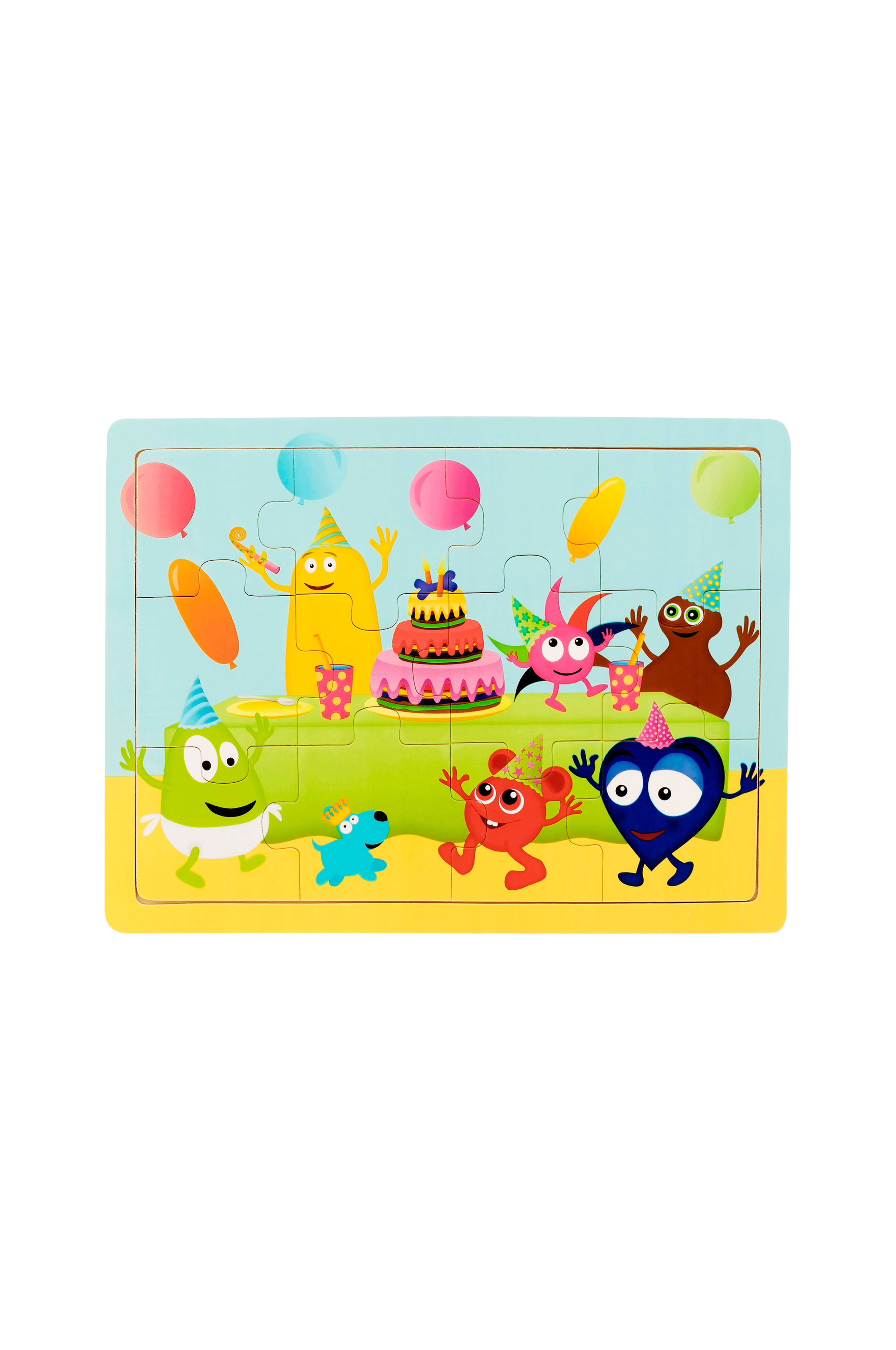 Gediget träpussel med motiv från Babblarnas värld, Babblarna på kalas..