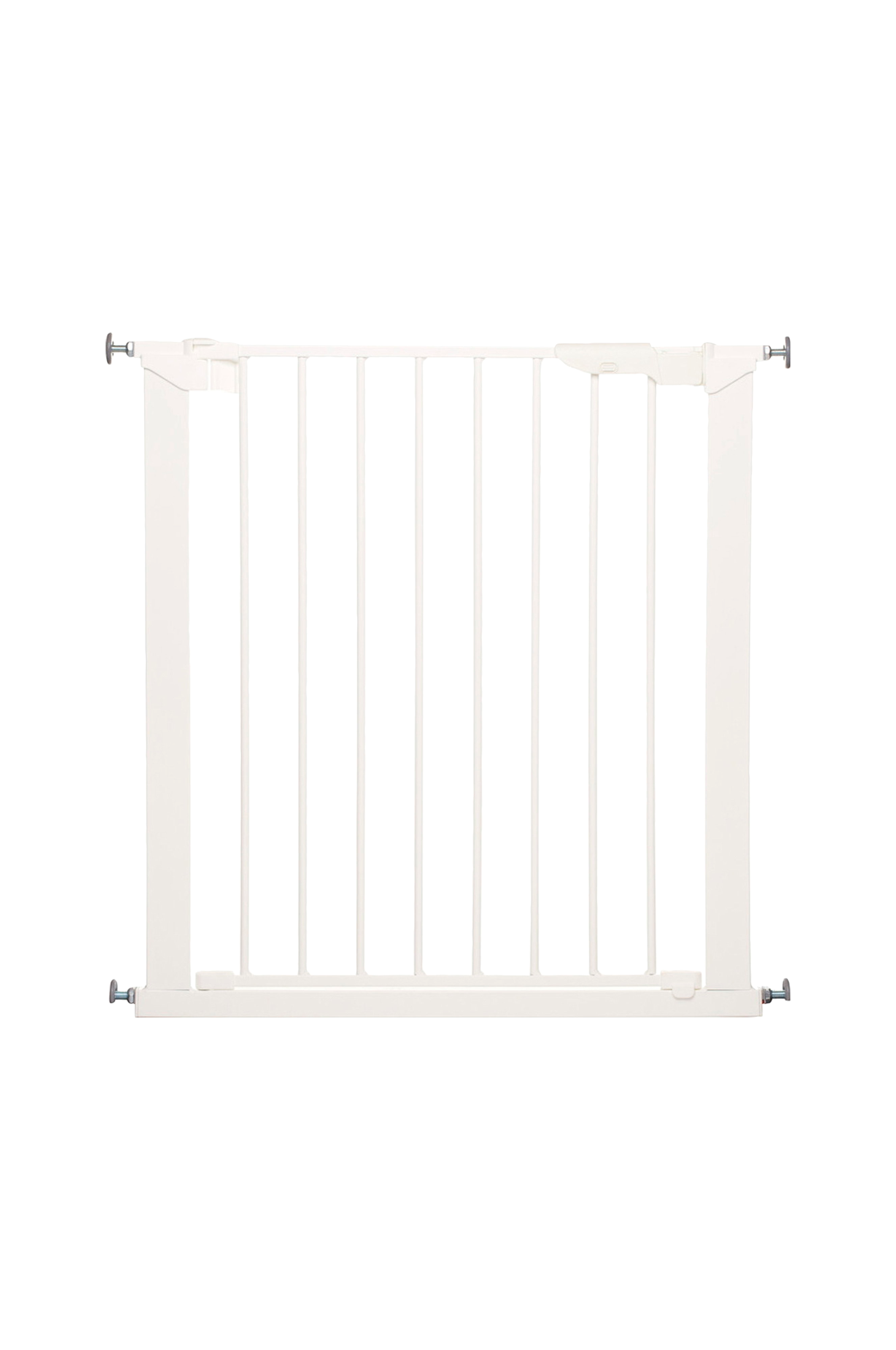 Handtaget är numera ännu enklare att öppna för en vuxen person. Dessutom sitter nu indikatorn på handtaget vilket gör det ännu enklare att se att grinden är korrekt monterad. Naturligtvis är det en tryckmonterad grind som inte behöver skruvas fast och därigenom lämnar den inga skruvhål efter sig i väggen eller karmen efter användning.