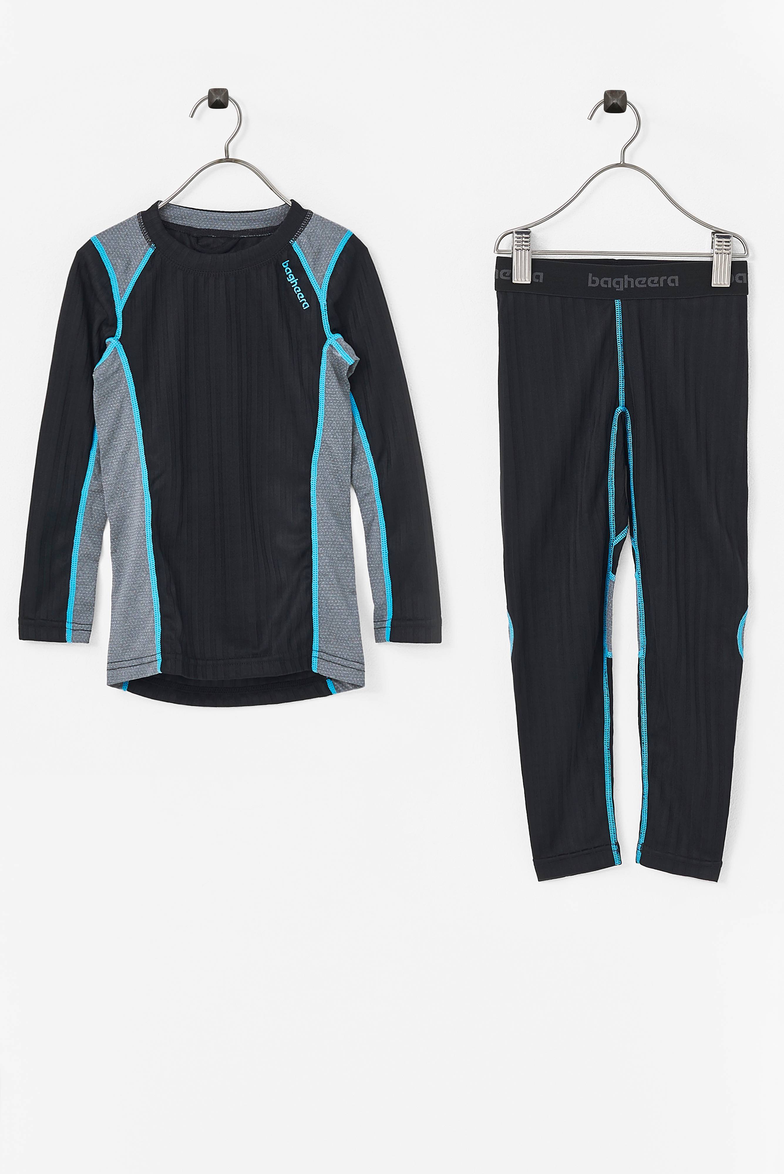 Underställ HP Layer 1 Set Kids från Bagheera är ett skönt, superstretchigt, snabbtorkande lager 1-set som används närmast kroppen. Tröjan och byxorna är i randstickad stretchtrikå med god fukttransport och andasförmåga. Smidiga sömmar som inte skaver. Byxorna har påsydd resår i midjan.