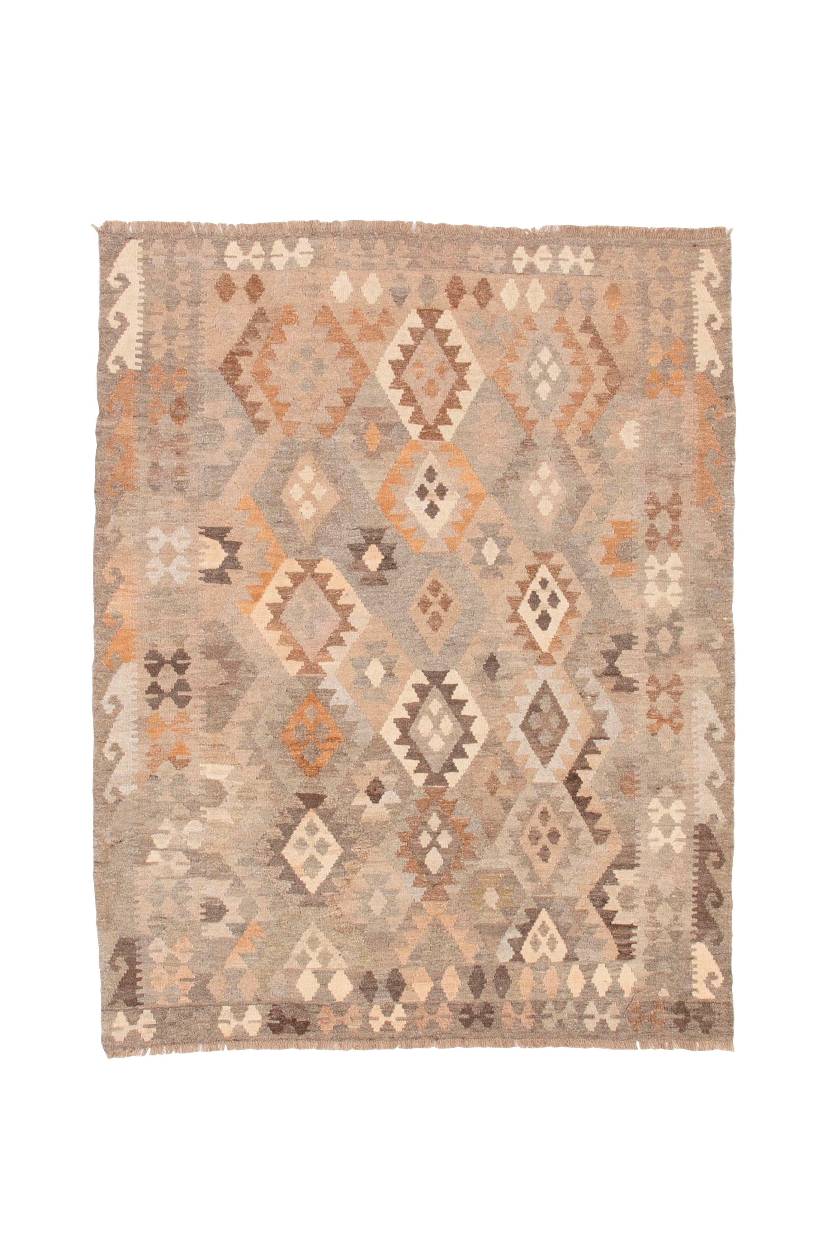 En klassisk vävd matta med ett heltäckande geometriskt mönster. Det vegetabiliskt färgade garnet ger en vacker och harmonisk färgskala och eftersom den är vävd i 100% ull är den både varm och smutsavvisande. En lättplacerad matta som passar lika bra framför en sprakande brasa i favoritfåtöljen som i köket.