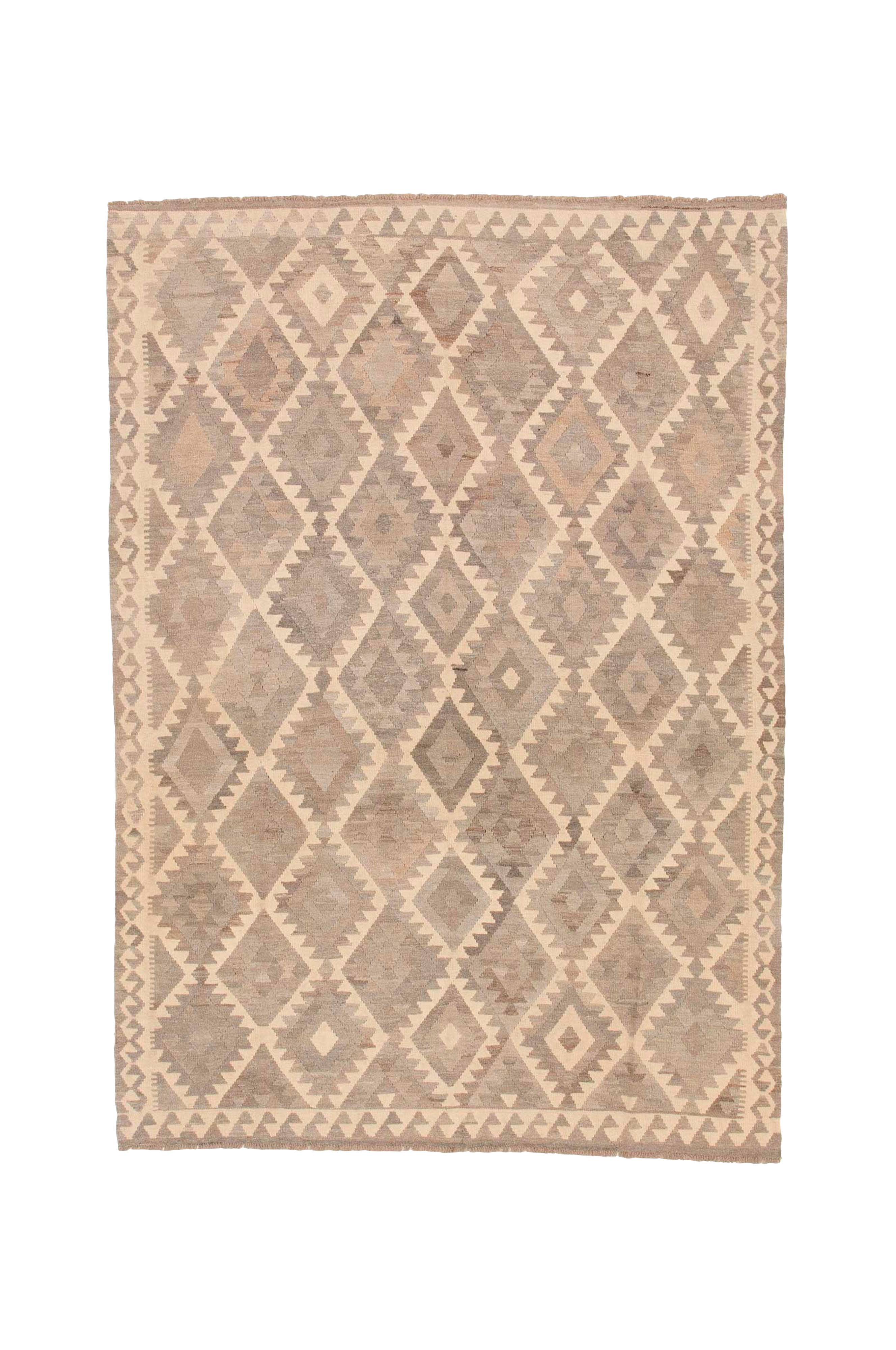 En melerad matta i ofärgat garn av högsta kvalitet. Ett traditionellt geometriskt mönster med övervägande diamanter smyckar mattan. Härligt värmande och smutsavvisande ull sprider ombonad värme och ger mattan lång livslängd.