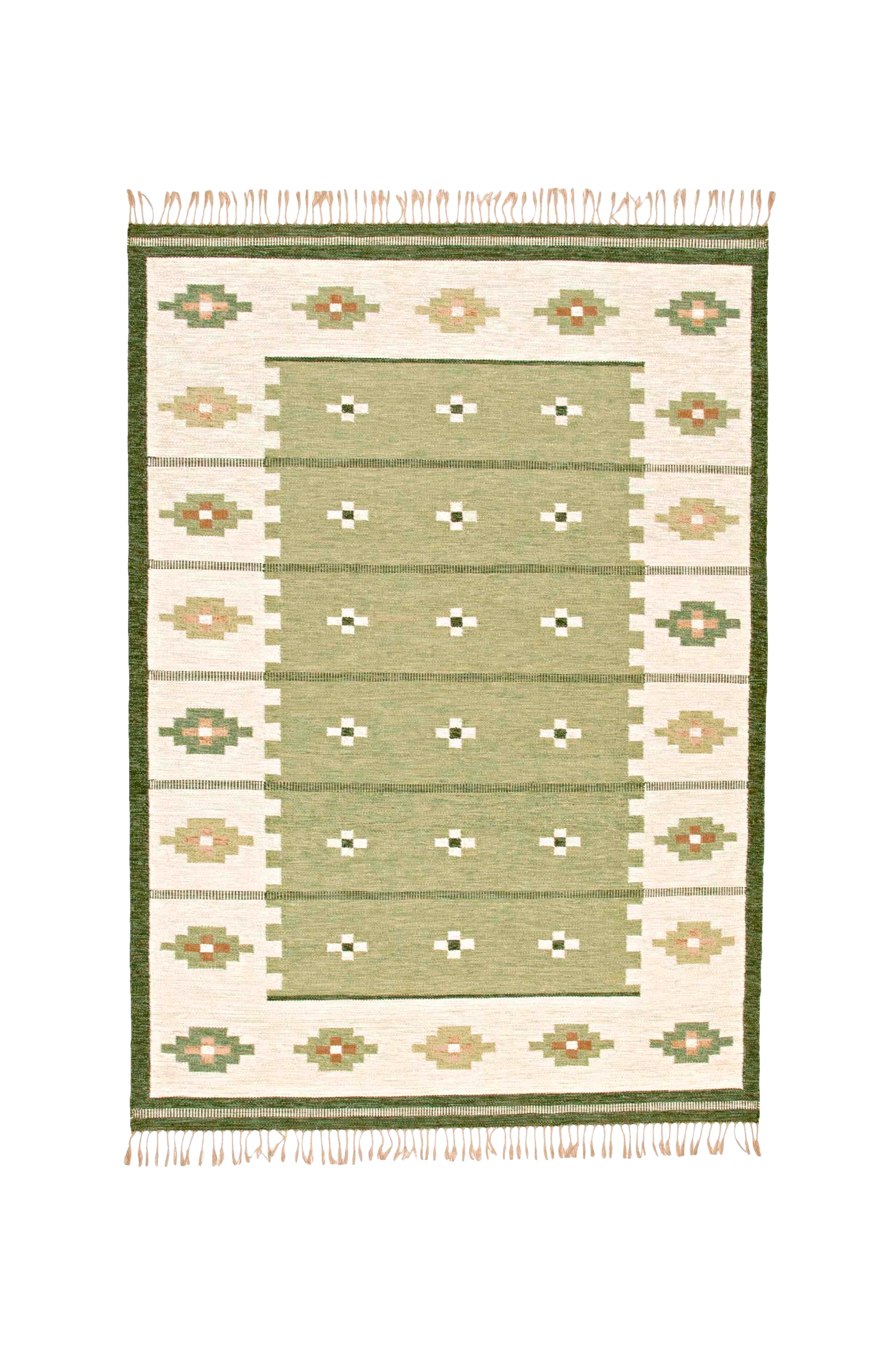 Nordic light, ett klassiskt överkast vävt enligt gamla traditioner av indiska hantverkare. Fint handspunnet ullgarn med en varp av linne ger en mjuk och slitstark matta. Mattan är vändbar och kan användas på båda sidor.