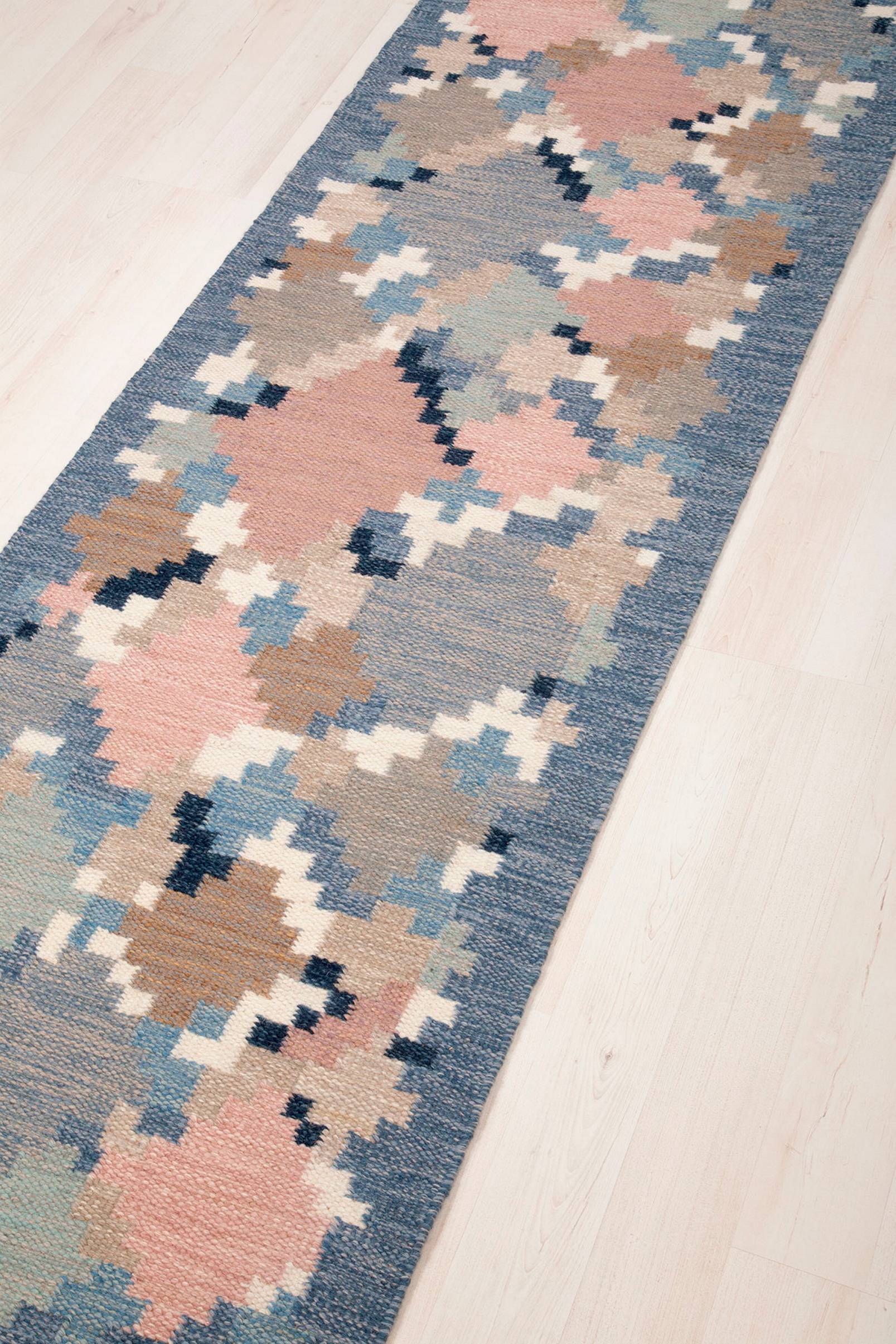 En klassisk Dra-på-lakan med ett traditionellt mönster. Den vändbara mattan i smutsavvisande ull på en linnevarp passar i både stuga och villa och har en tidlös skandinavisk design.