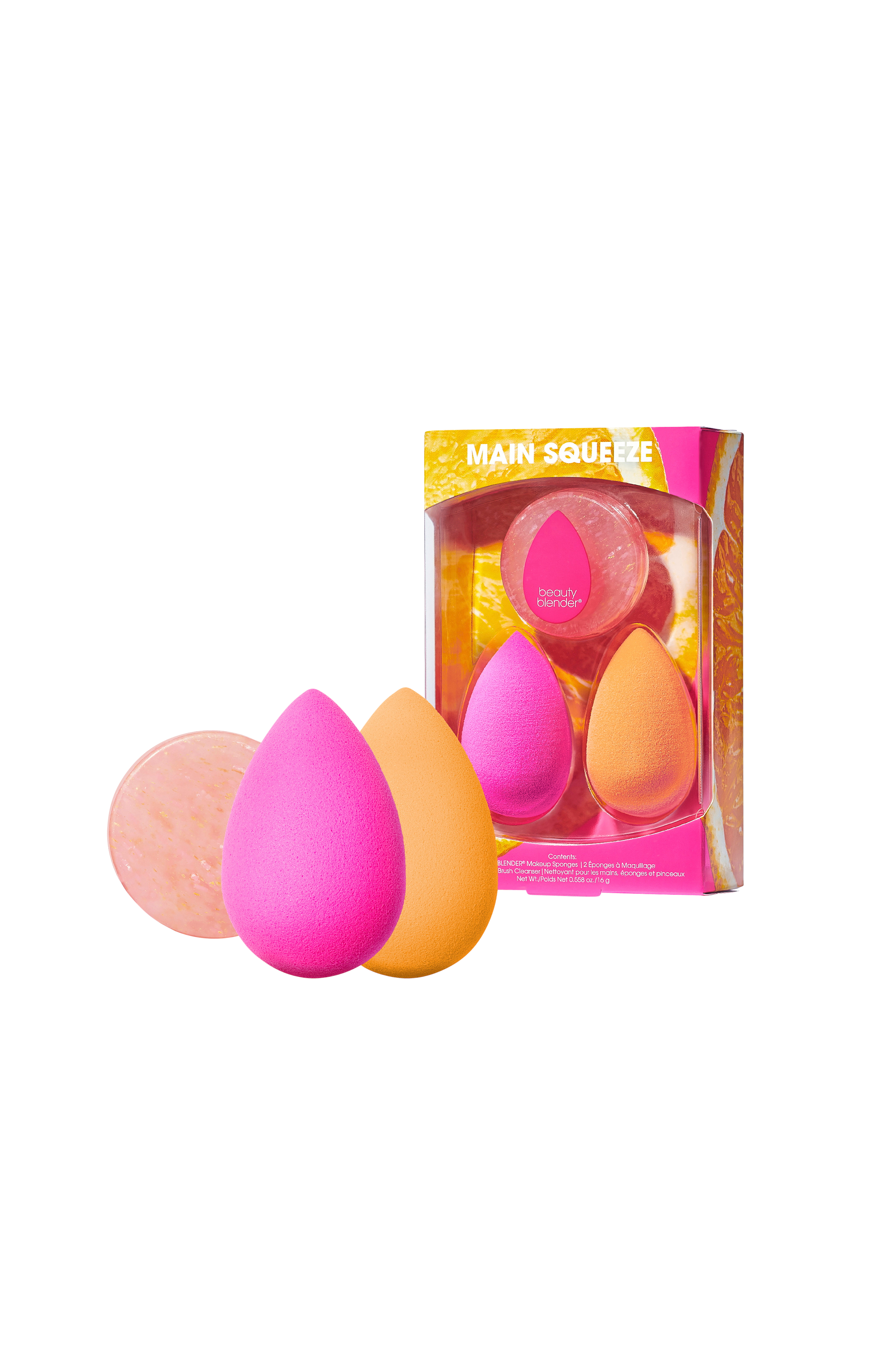 Set med den prisbelönta Beautyblender i två snygga nyanser: Pop, en läcker orange nyans i begränsad upplaga och signaturnyansen Original pink. En Blendercleanser i begränsad upplaga som håller svampar och verktyg rena så att de håller längre och ger bättre prestanda. Denna söta produkttrio boostar din makeuprutin och ger dig en felfri applicering.