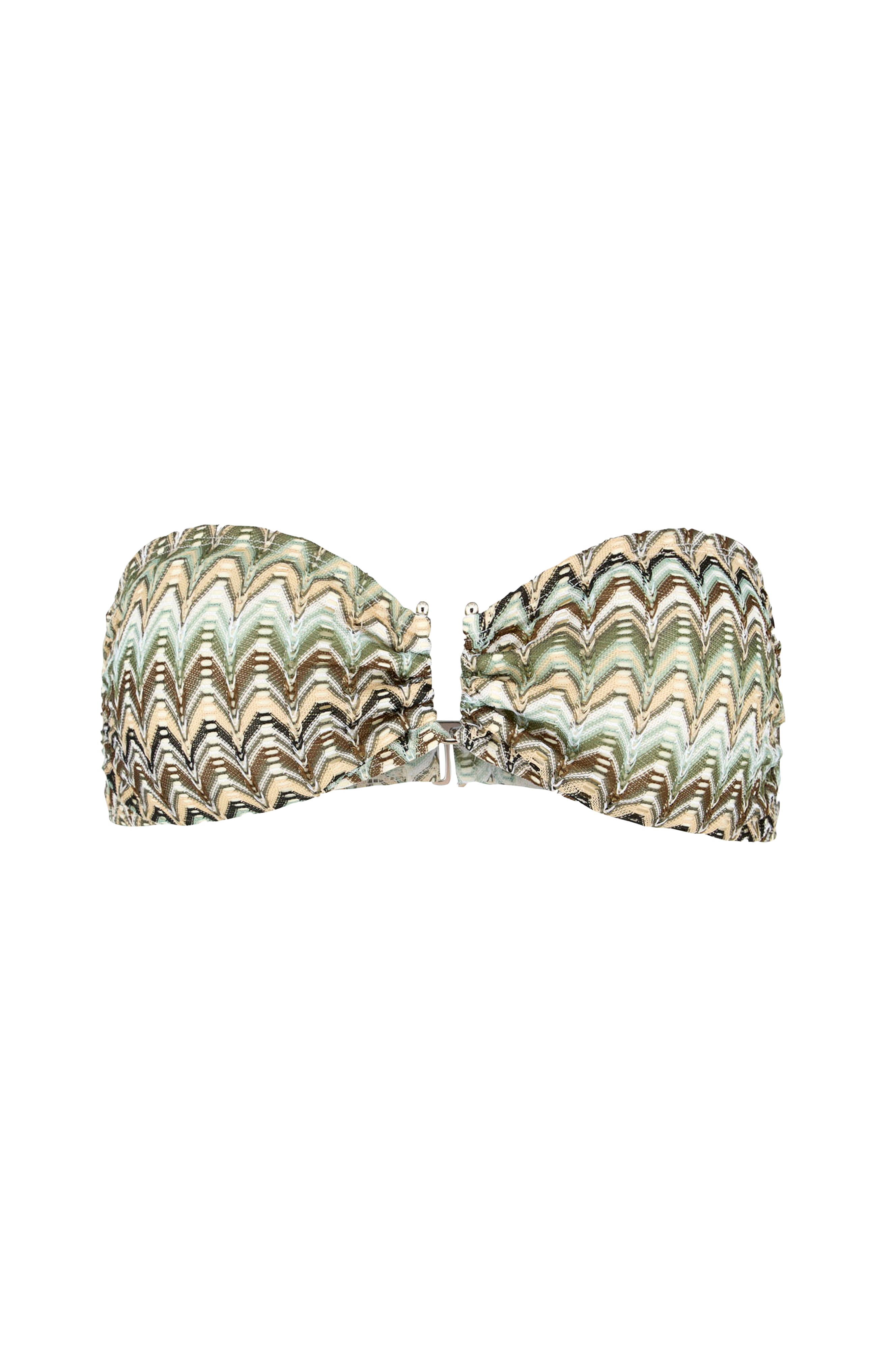 • Bandeaubikini med metalldetalj mellan kuporna• Uttagbar vaddering• Inre silikonkant• Stängning i ryggen