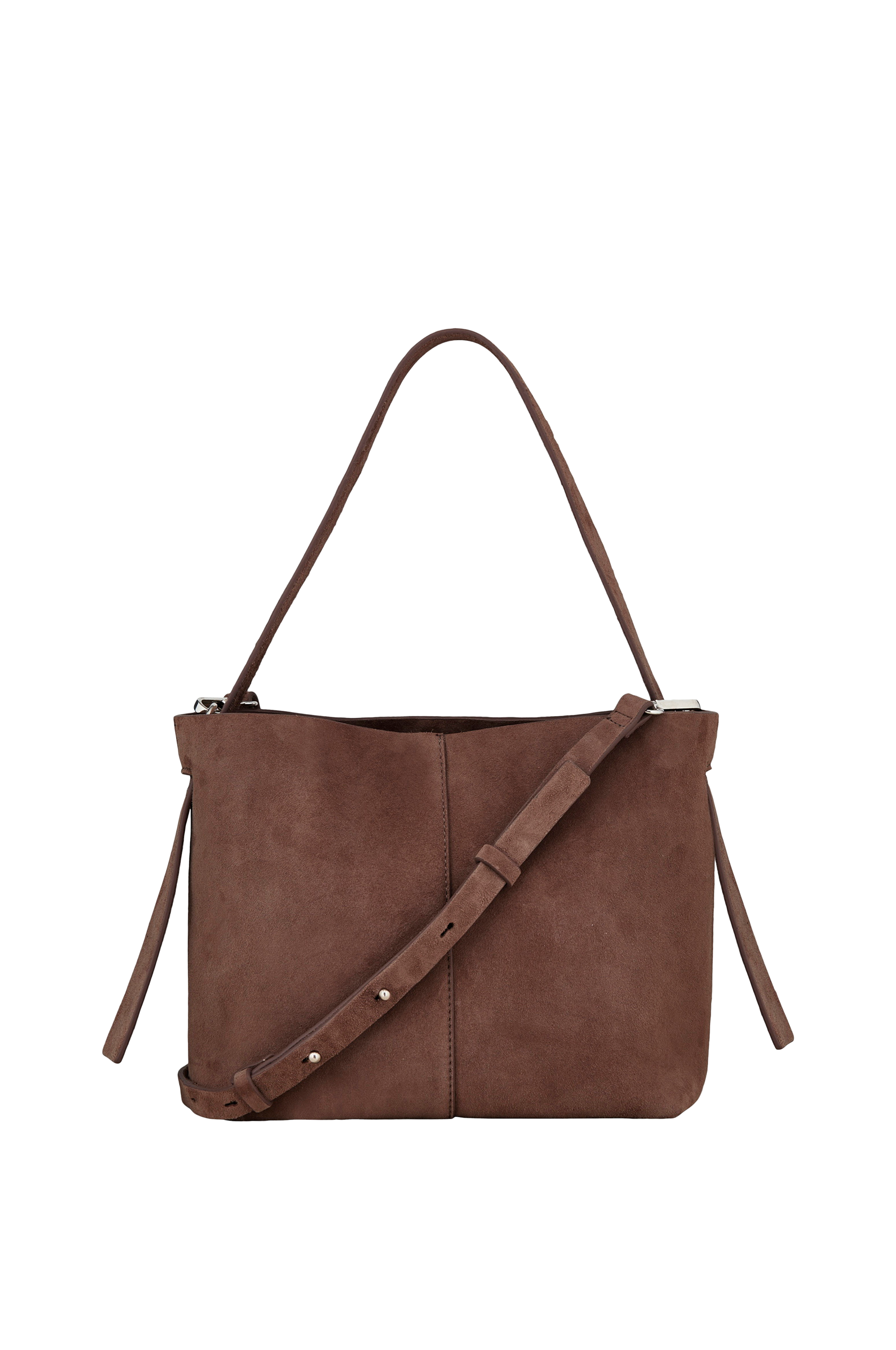 • Väska i mocka• Stängning med magnetknapp• Två stora fack• Ett fack med dragkedja• En invändig, öppen ficka• En invändig dragkedjeficka• Textilfoder• Bärhandtag• Justerbar, avtagbar axelrem• Mått: B 26 x H 23 x D 12 cm