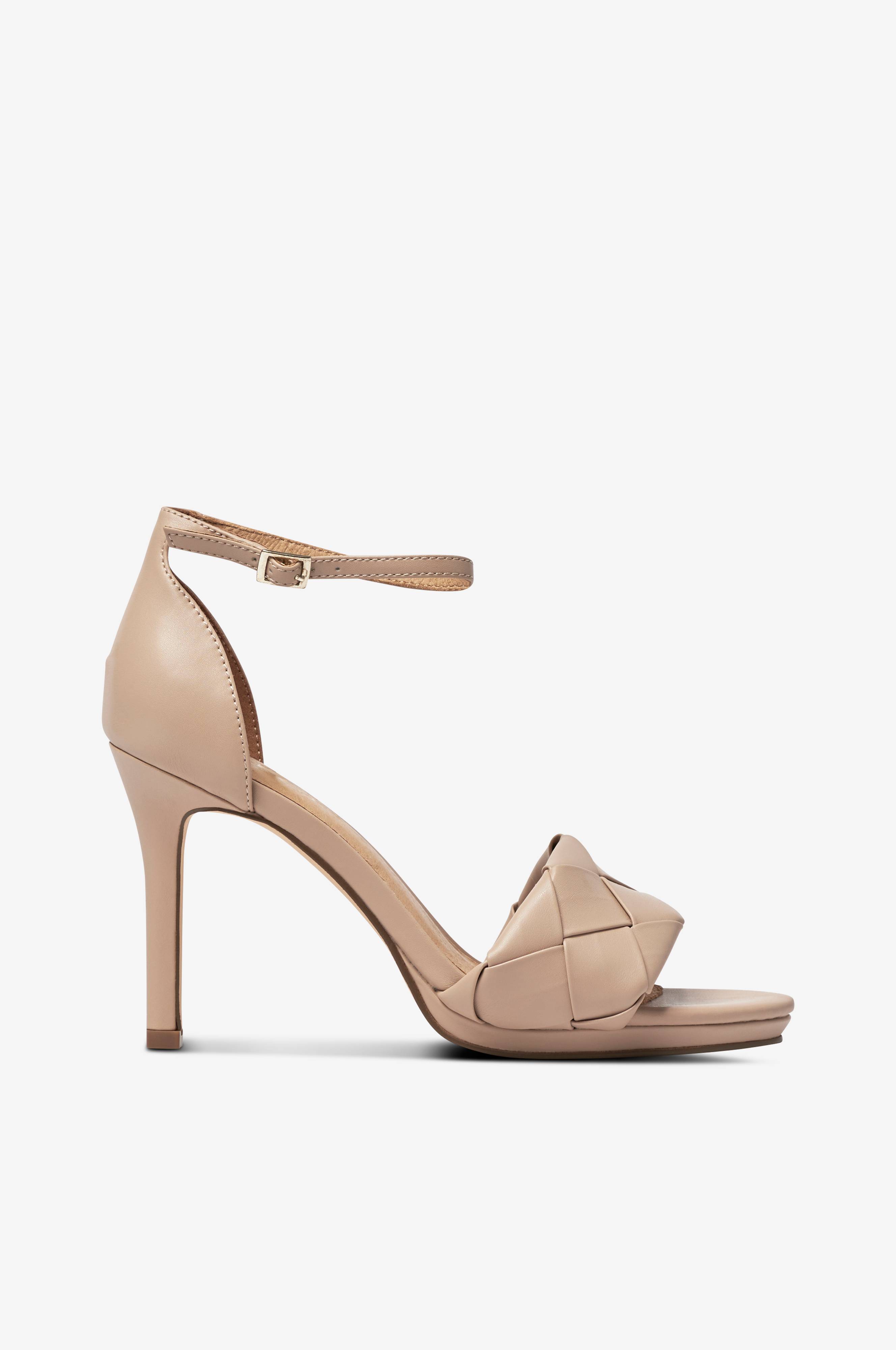 • Flätad rem i skinnimitation fram• Täckt häl• Smal rem med spänne vid ankeln• Hög stilettklack• Klackhöjd: 9,5 cm