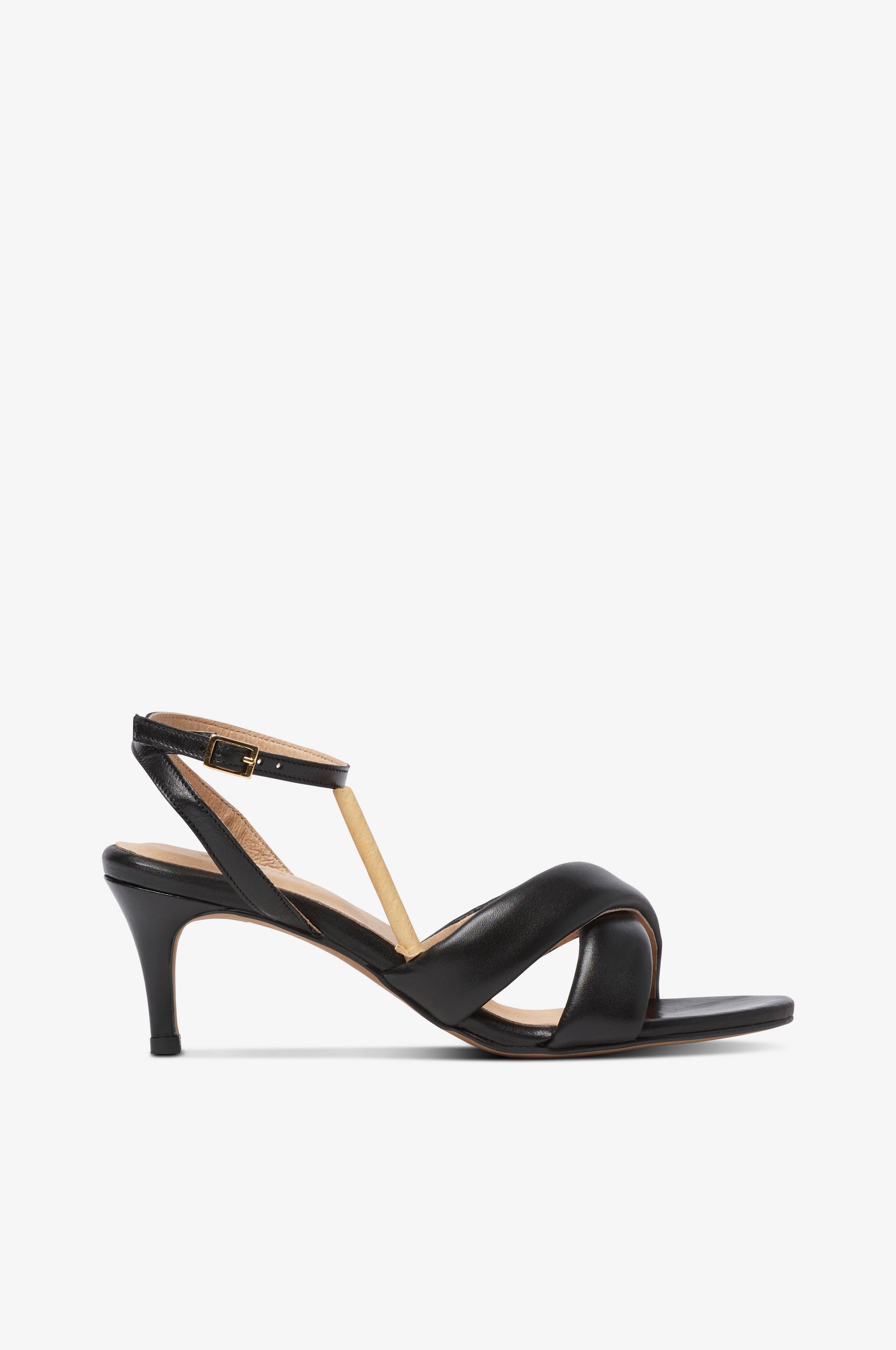 • Vadderade, korslagda remmar i skinn• Smal rem med spänne vid ankeln• Klackhöjd: 6 cm