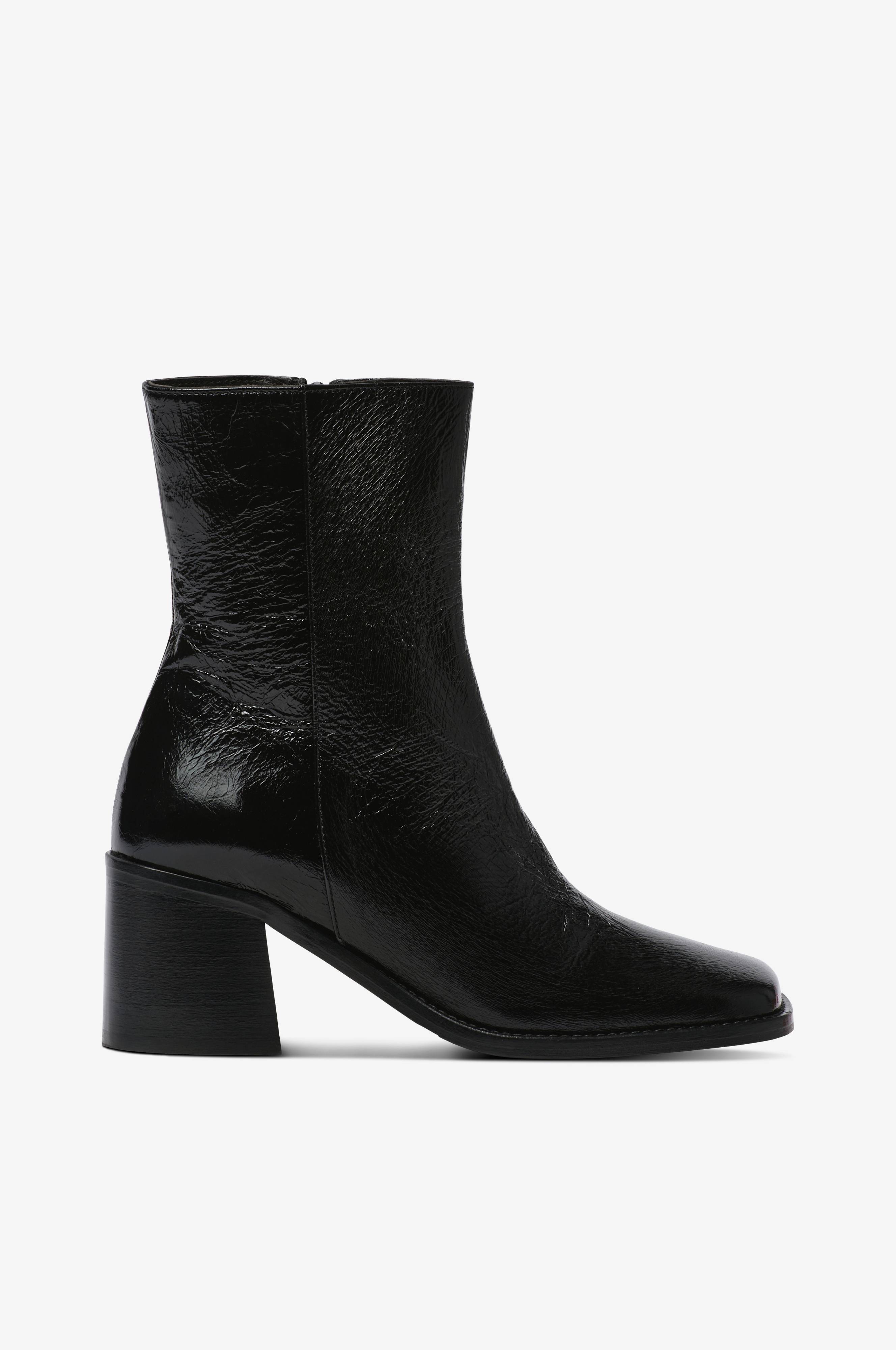 • Blank, krackelerad modell i skinn• Fyrkantig tå• Dragkedja på insidan• Foder i skinn• Skafthöjd: 17 cm i stl 37• Klackhöjd: 6,5 cm