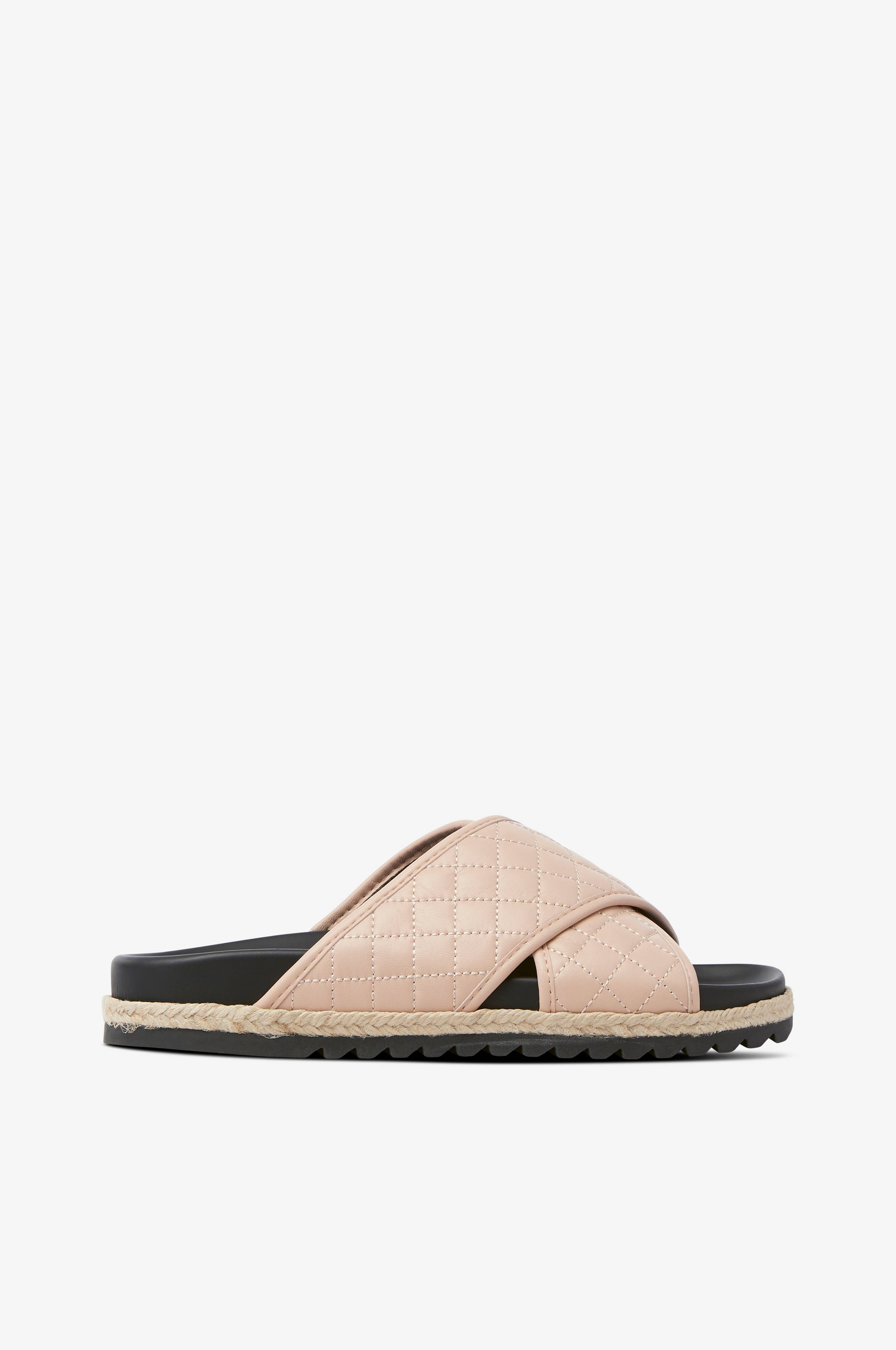 Sandaler med breda, korslagda remmar i quiltat nappaskinn. Formad fotbädd och räfflad yttersula med repkant.