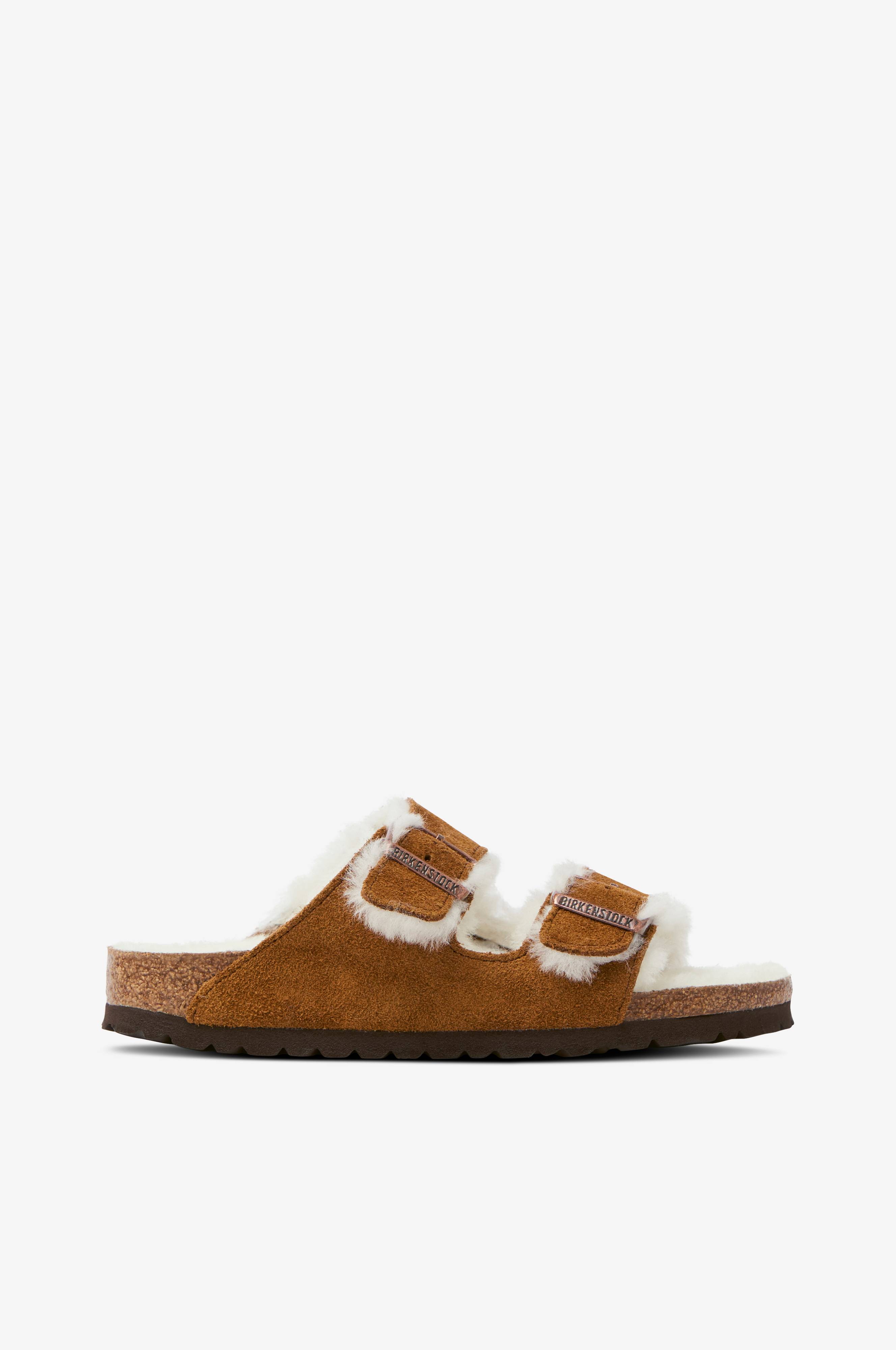 Sandaler Arizona Shearling Mink från Birkenstock. Modell i mocka med mjukt pälsfoder av ull. Fotriktig, anatomisk fotbädd med stötdämpande mellansula av lättviktig naturkork. Yttersula i EVA som ger behaglig stötdämpning.