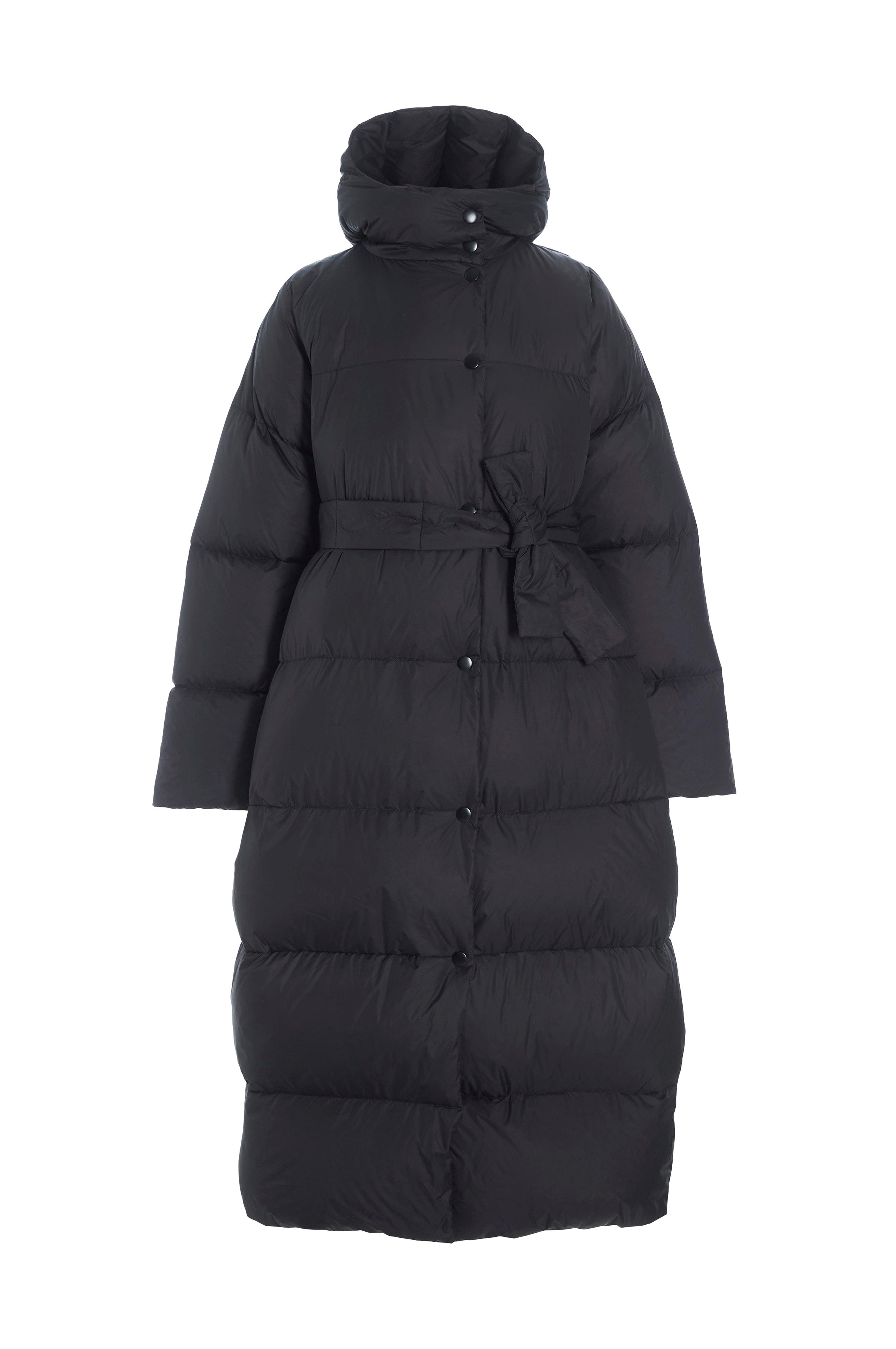 • Vadderad kappa med fyllning i dun och fjäder• Fast huva• Hög krage• Tryckknappsstängning• Knytband i midjan• Sidfickor• Avslappnad passform• Längd: 119 cm i storlek S