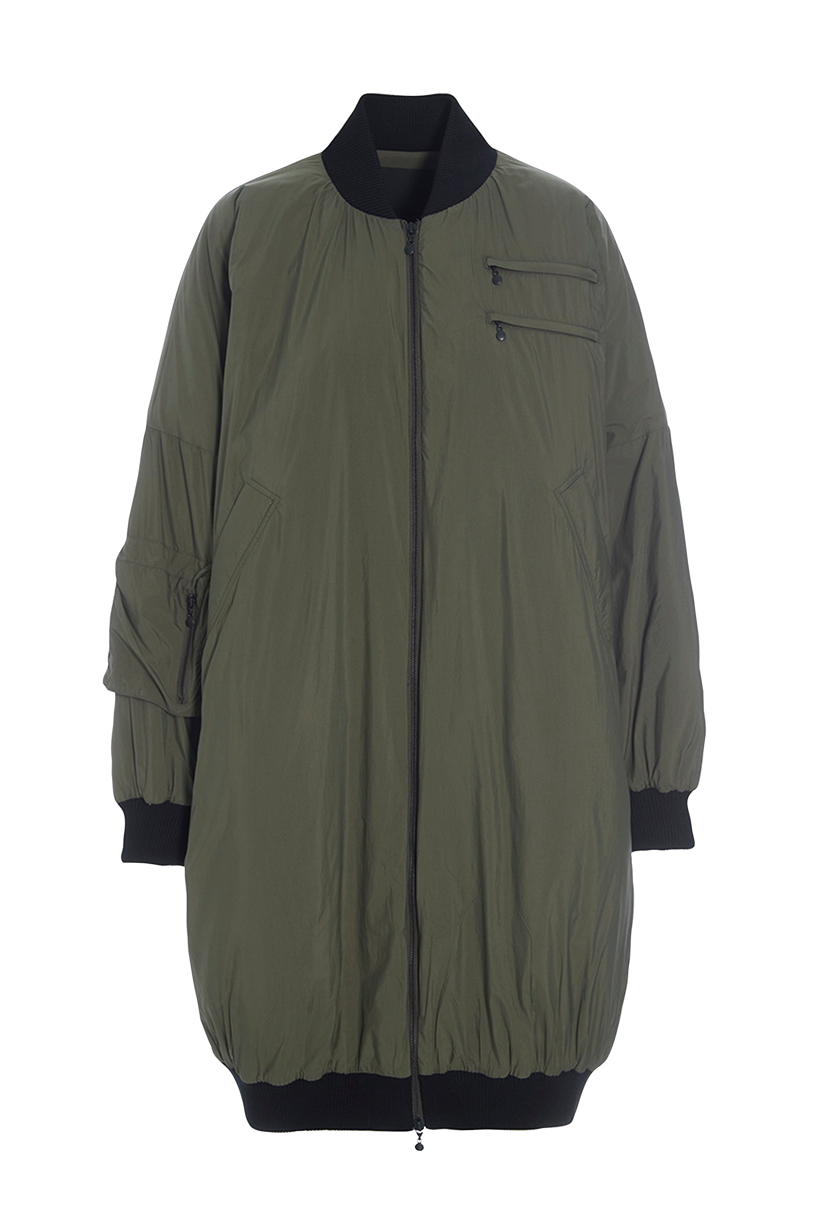 • Lång, vadderad jacka med sportig bomberdesign• Ribbad krage• Tvåvägsdragkedja• Sidfickor• Ribbmuddar i ärmsluten och nedtill• Längd: 105 cm i storlek S