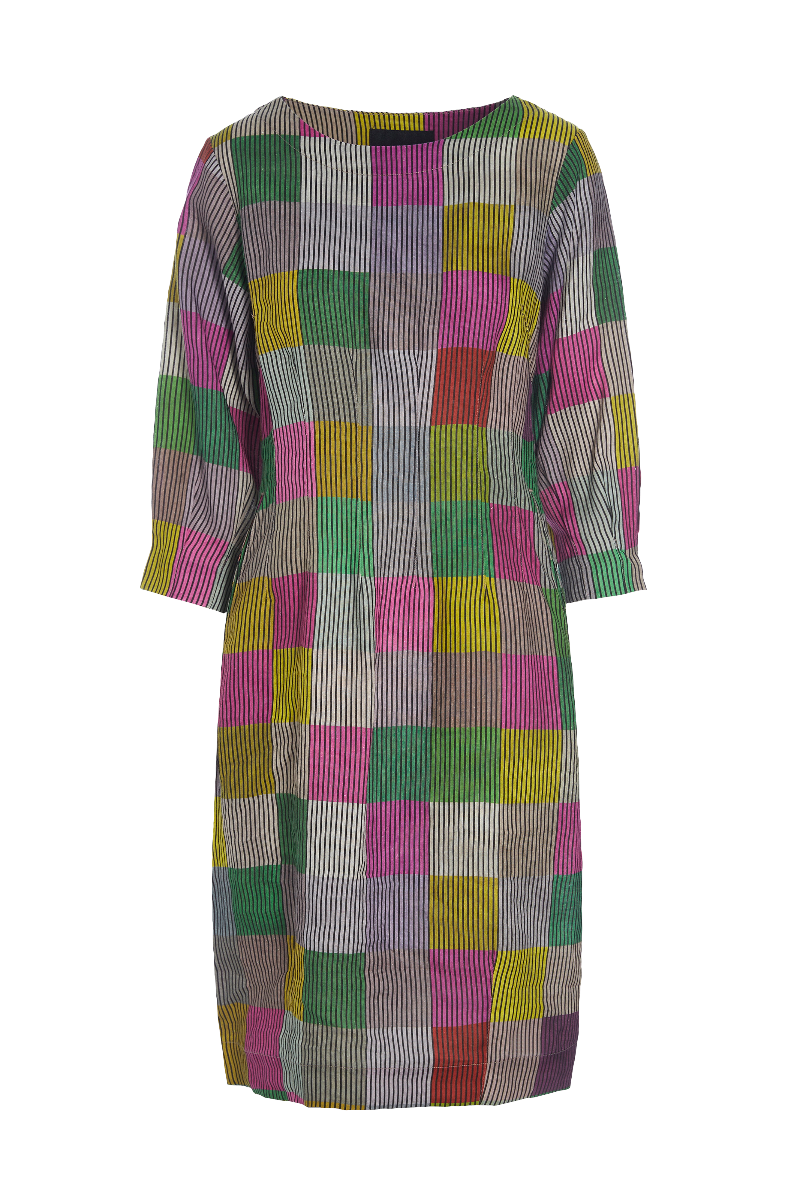• Klänning i 100% lin• Rutigt flerfärgat mönster på randig bakgrund• Båthals• 3/4-dels längd på ärmarna• Sidfickor• Avskärning i midjan• Längd ca 102 cm i stl XL