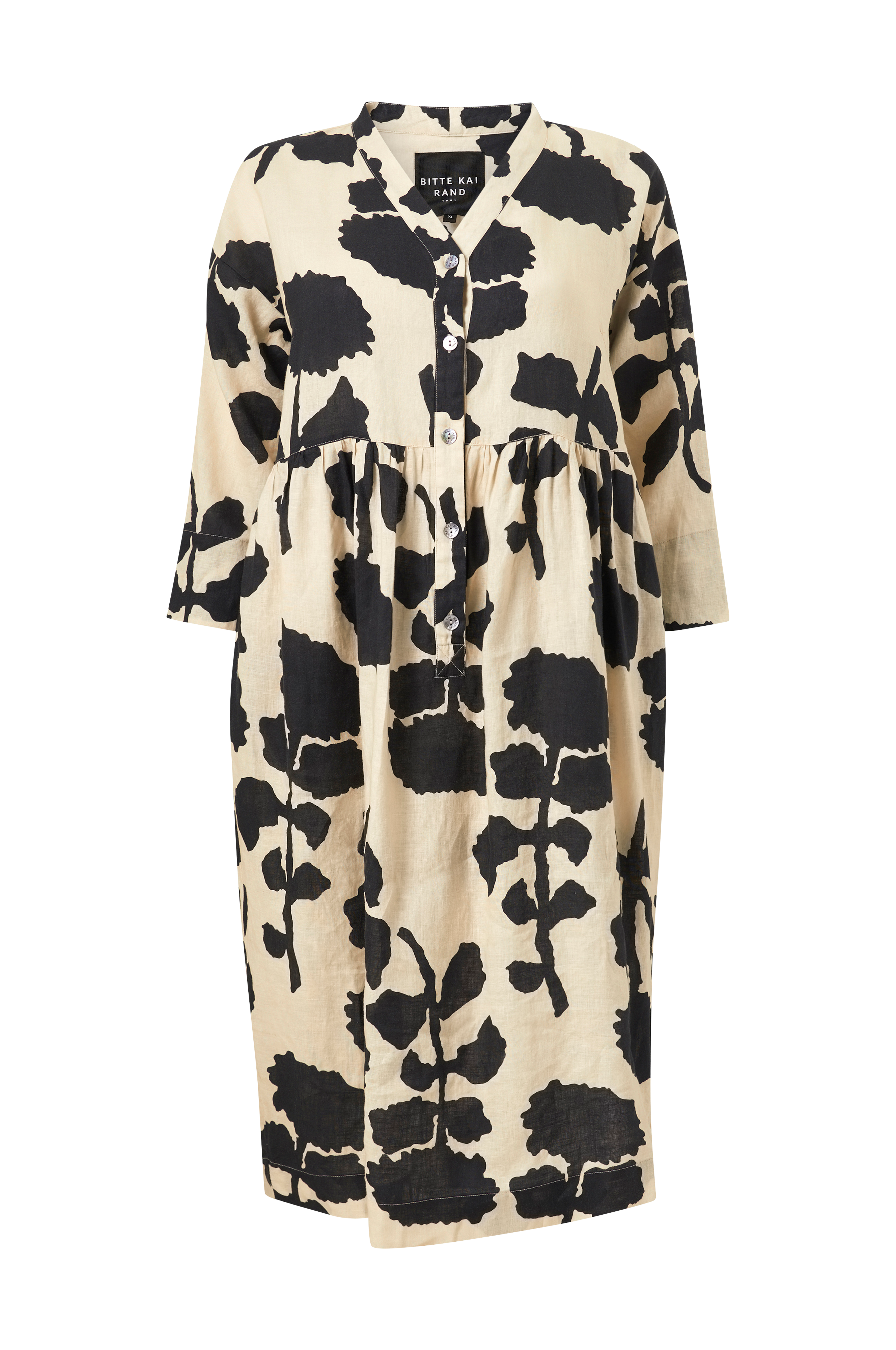 • Gjord av sval linnekvalitet• V-ringad hals• 3/4-långa ärmar• Knappar ned till midjan• Längd: 125 cm i storlek XL