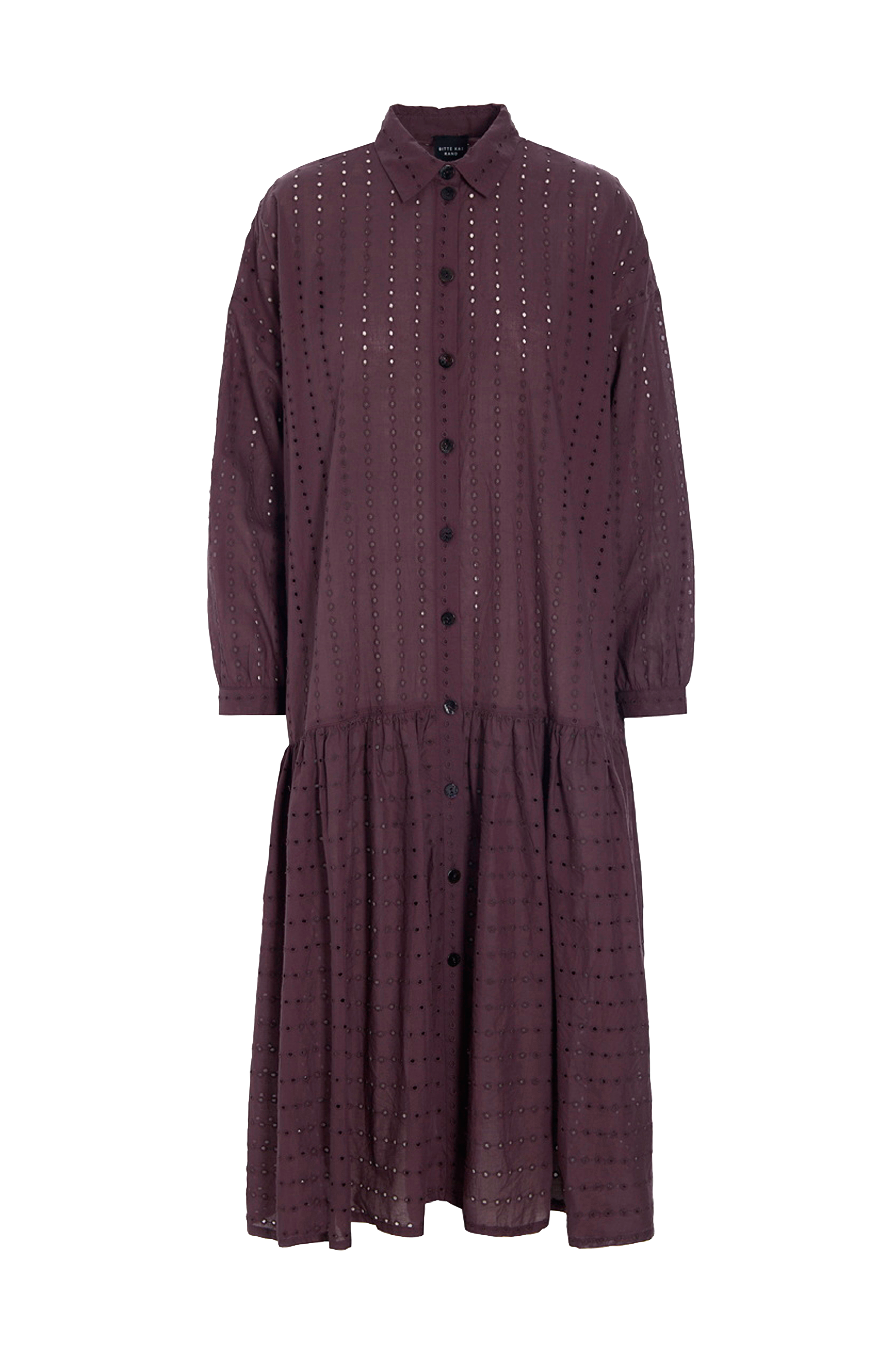 • Midiklänning med broderat hålmönster• Knappar fram• Nerhasade axlar• Nerhasad midja• Längd: 120 cm i storlek S