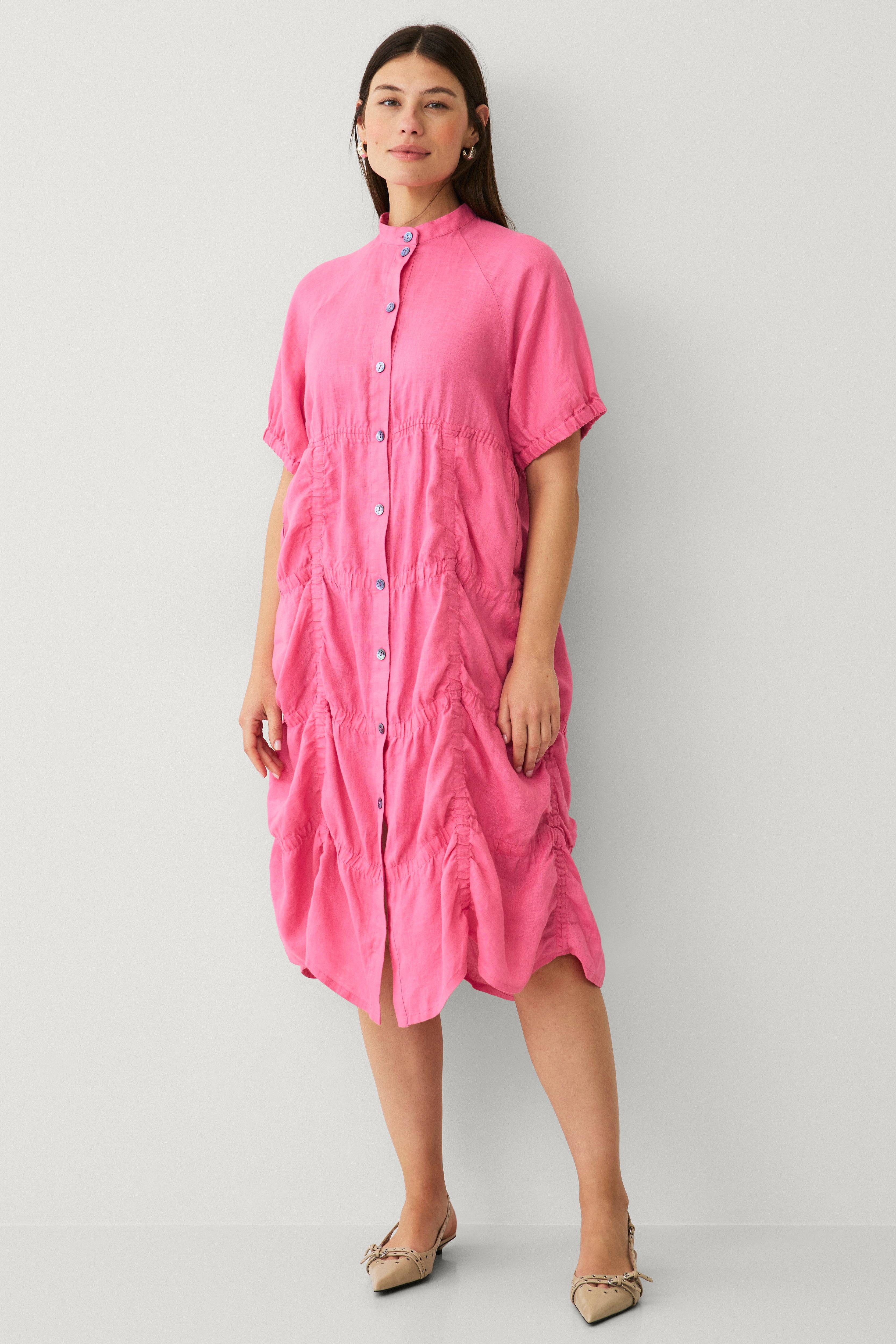 • Ledig modell med knappar hela vägen fram• Kort, raglanskuren ärm med resår i ärmsluten• Sidfickor• Draperingar på kjolen med infälld resår• Längd: 113 cm i storlek S