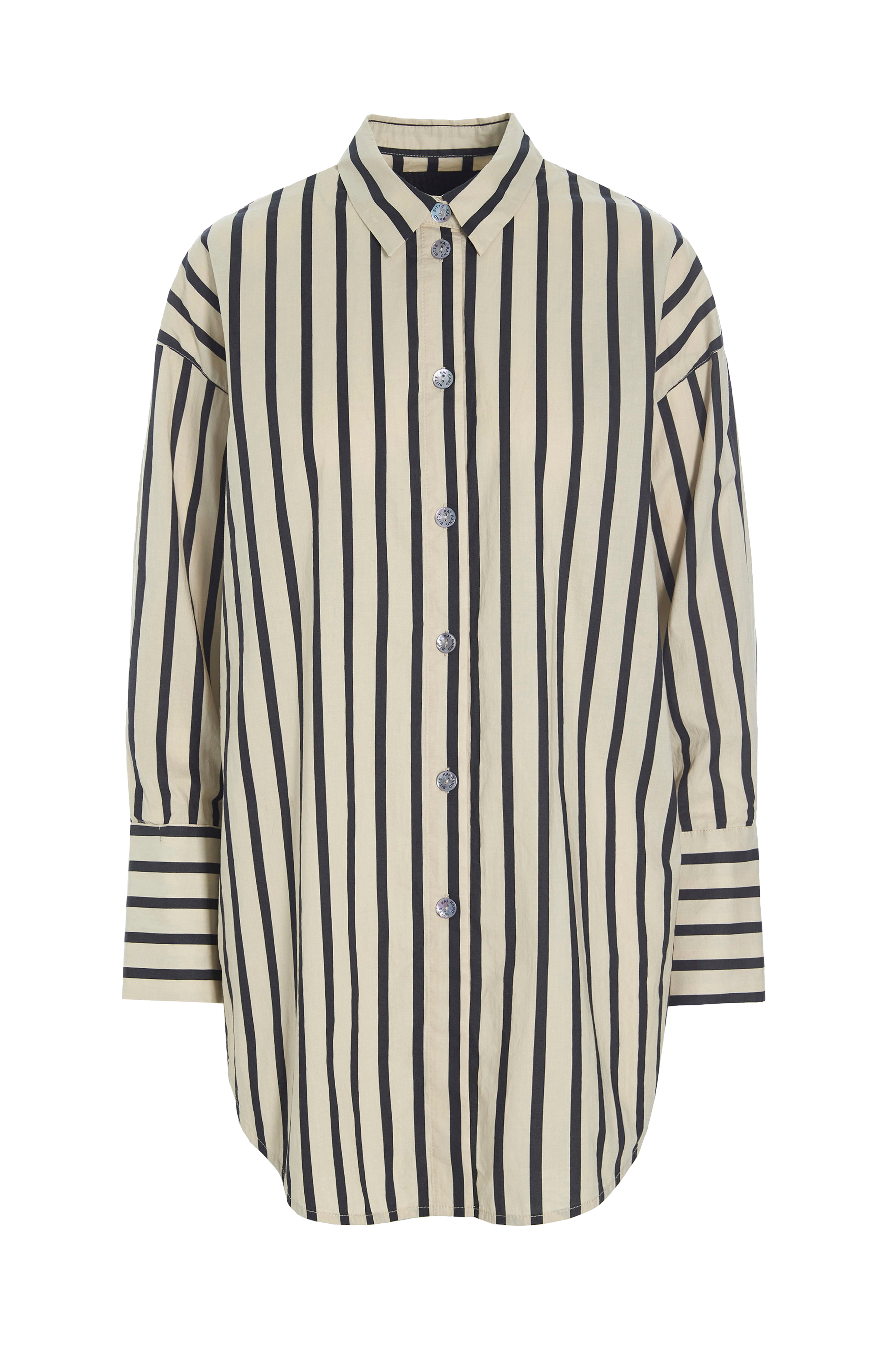 • Lång skjorta i bomull• Knappar med logotryck• Långa ärmar med breda manschetter• Rundad nederkant