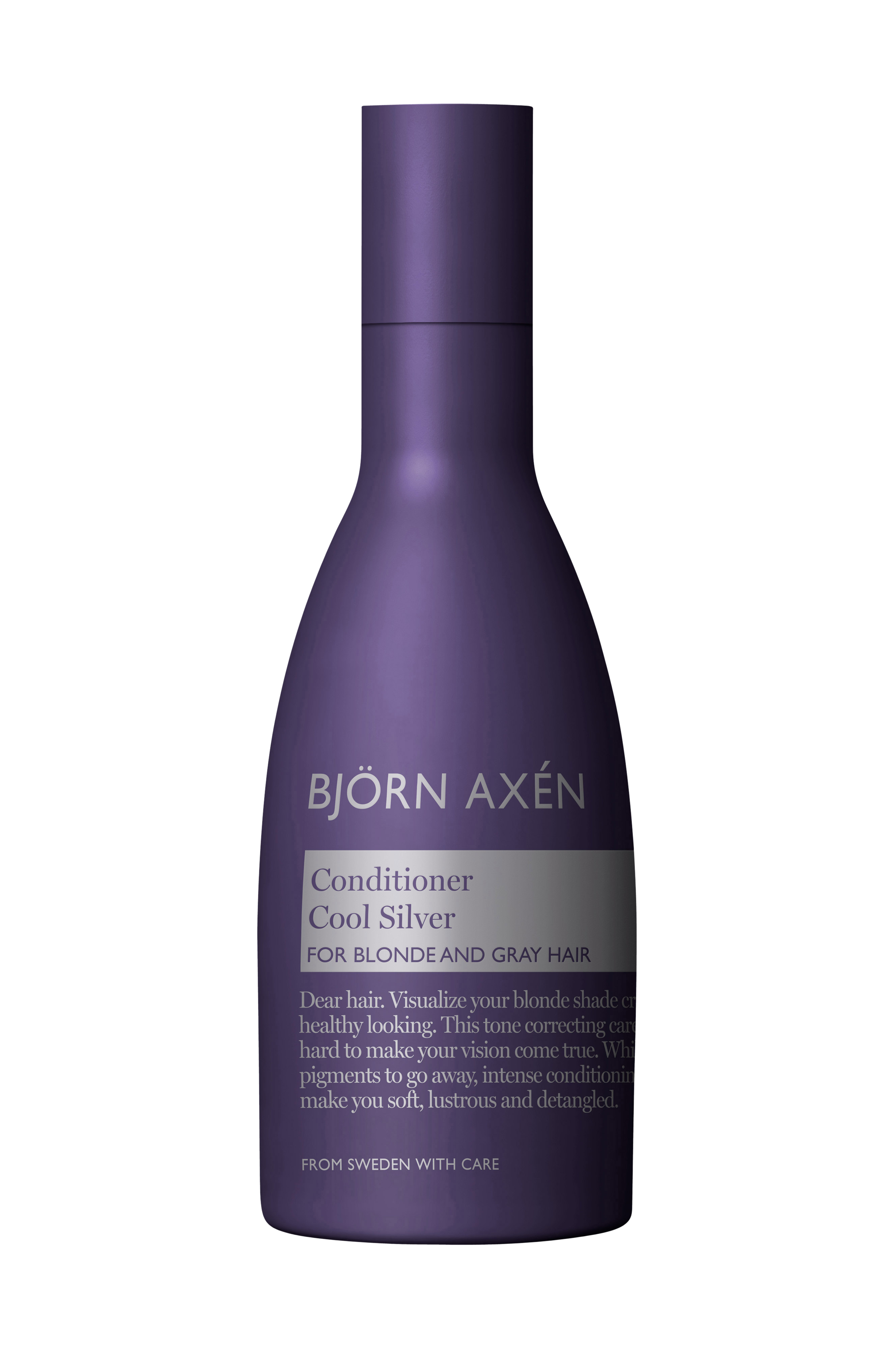 Cool Silver Conditoner är ett utredande och mjukgörande pigmentbalsam för behandling av blont och grått hår. Balsamet neutraliserar gula toner och ger vacker och klar glans/lyster till håret. Vårdande proteinkomplex återfuktar och mjukgör hår och hårbotten. Produkten innehåller även UV-skydd och bär en härlig doft av Frosty Apricot. Hur fungerar Cool Silver? För att få en sval look så tillför man kalla pigment till håret. När håret har en varm ton så skiftar det i gult och genom att tillföra lila pigment så neutraliserar man de gula tonerna och håret får en kallare nyans. Både blonda och gråa hår upplevs ibland som livlösa och matta. Genom att tillföra lila pigment ser håret både friskare och vackrare ut med ökad glans och lyster. Användning: Applicera i fuktigt hår och låt verka 2-5 minuter, skölj ur. För bästa effekt, förbehandla med Cool Silver Shampoo. Komplettera med Cool Silver Leave-in-Spray om du önskar maximera den kalla effekten. En utredande och mjukgörande pigmentspray som är unikt på marknaden!Björn Axén Cool Silver Conditioner var nominerad till 2012 års Swedish Beauty & Cosmetics Awards! 250 ml