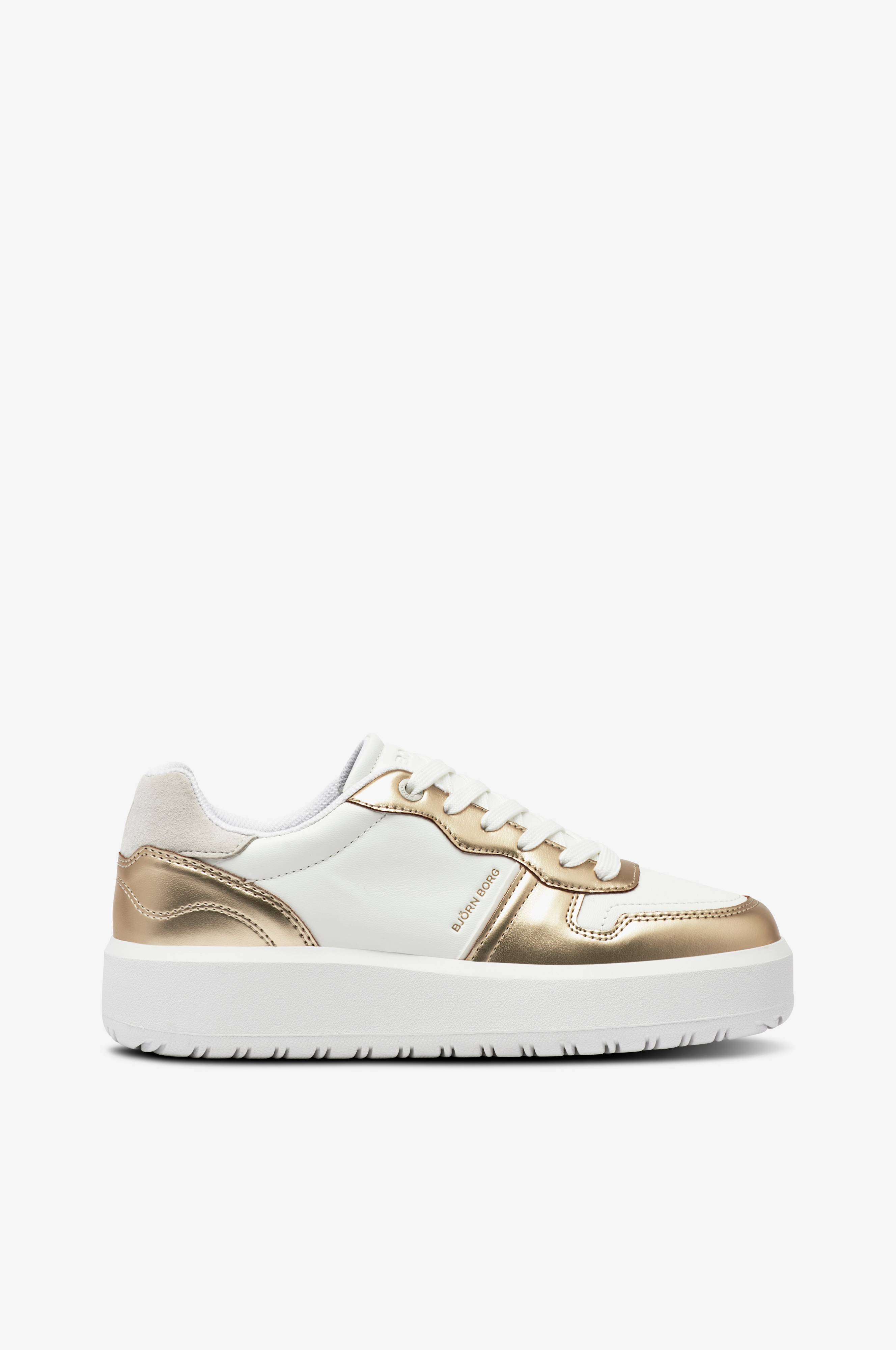 • Sneakers i skinnimitation med guldfärgade detaljer• Textilfoder• Uttagbar innersula• Kraftig sula i gummi med bra grepp• Sulhöjd: 4 cm