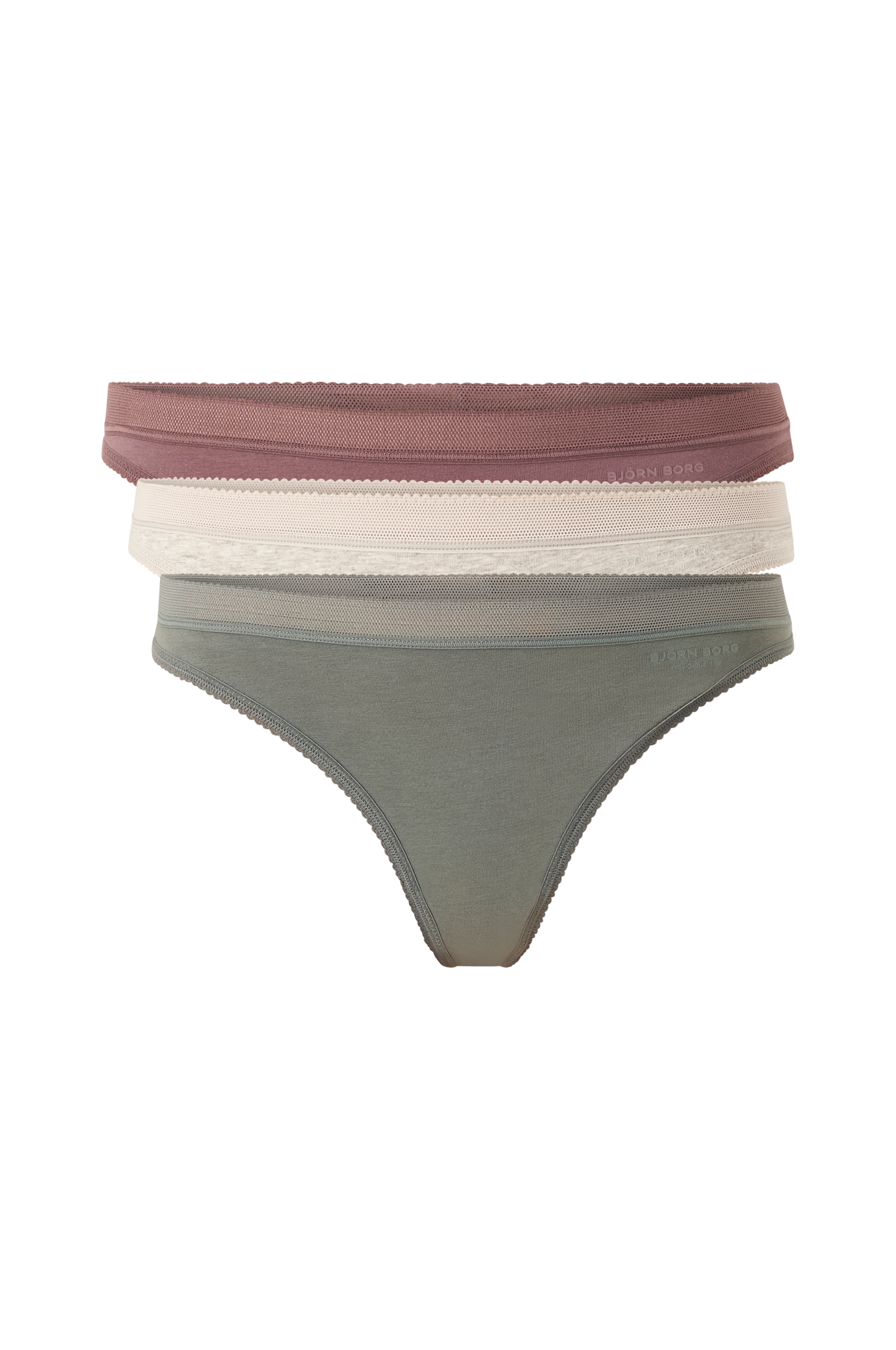• Stringtrosor i bomullstrikå• Mjuk spetsresår i midjan