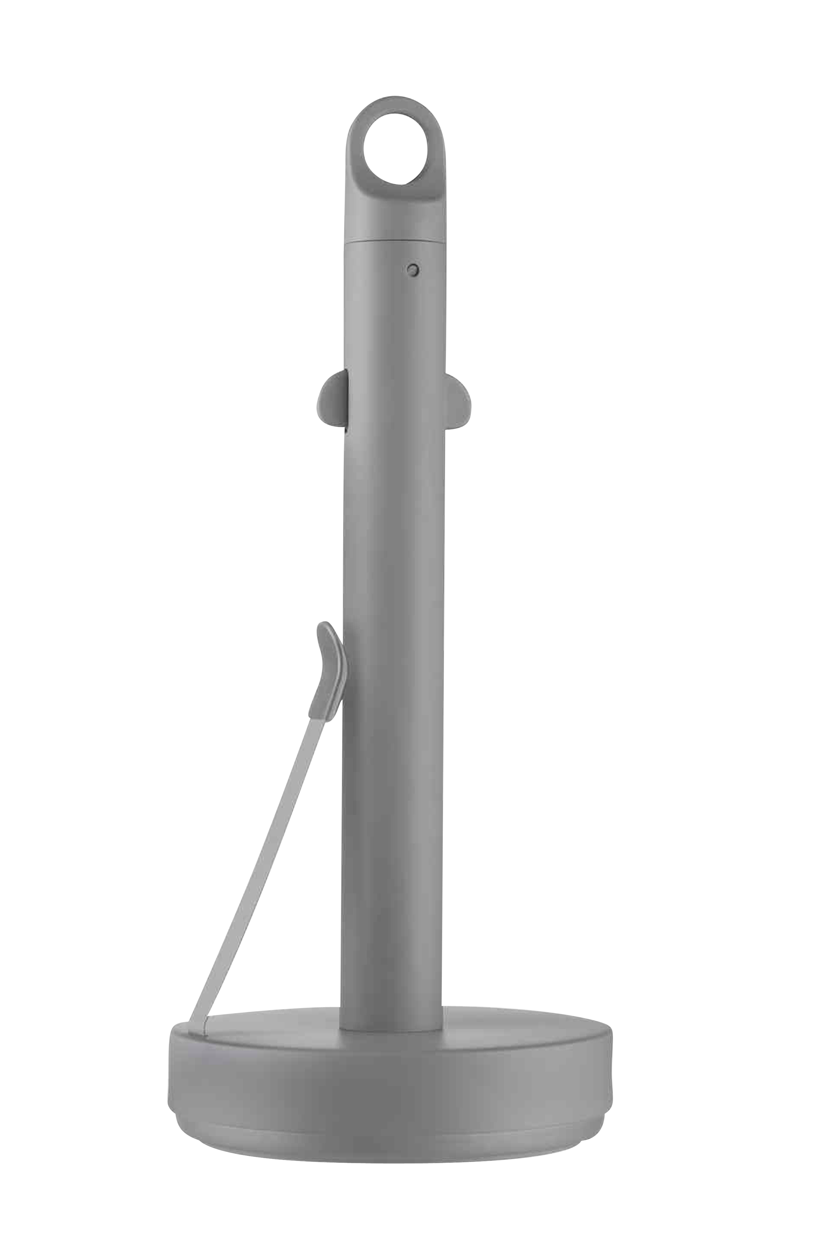 Hushållspappershållare LOOP från Blomus är enkel att använda med bara en hand och har en fjäder som gör att pappersrullen inte rullar upp när du river av den bit papper som behövs. LOOP är därför en miljövänlig och tidssparande hjälpreda i köket. LOOP är gedigen och står stadigt och stabilt på bordet. Mått: 34 cm Material: Matt rostfritt stål / Plast / Gummi