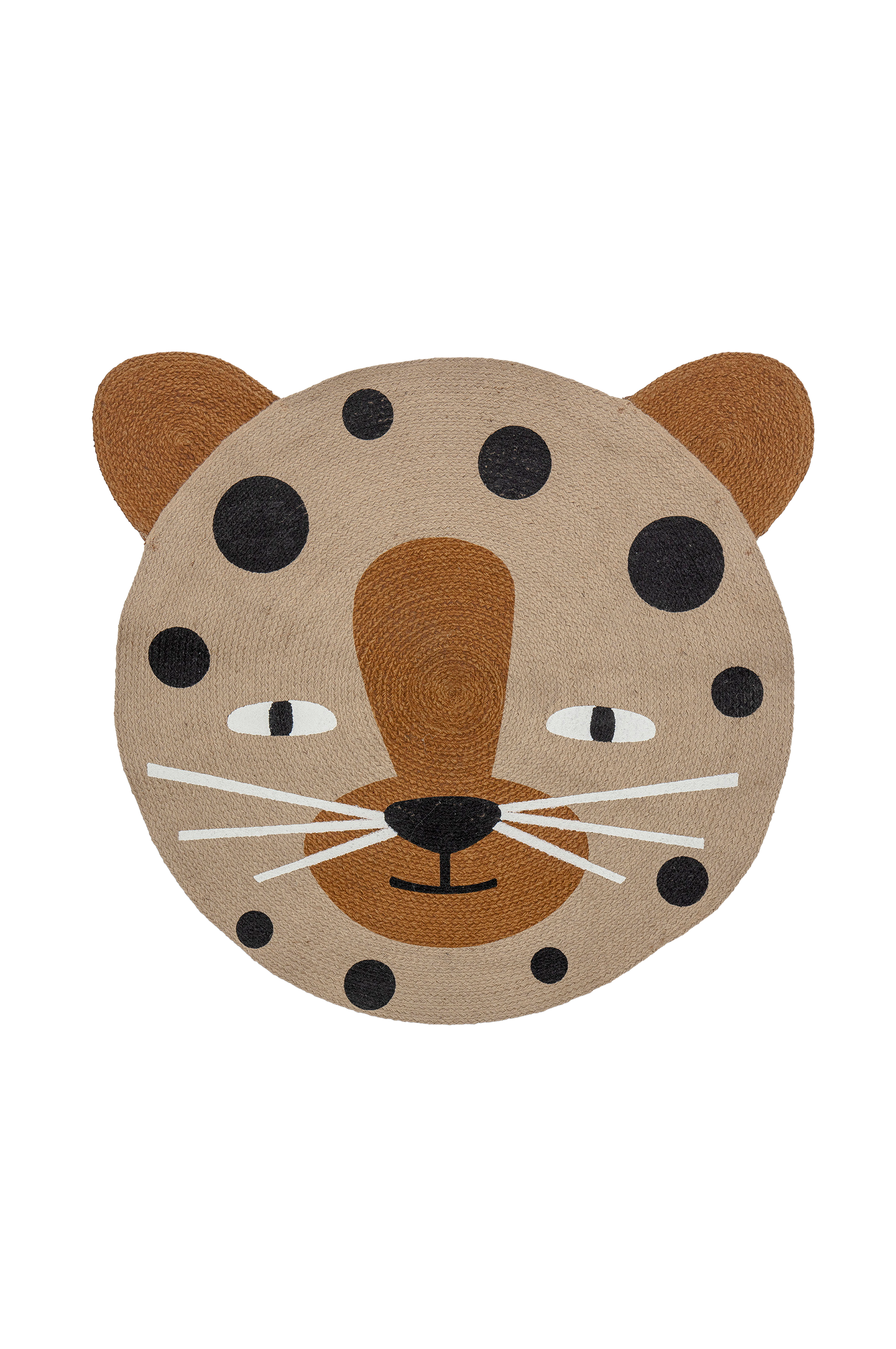 Naffie-mattan från bloomingville mini är en rundad jute-matta formad som en leopard med små öron. En lekfull matta som är perfekt för barnrum.