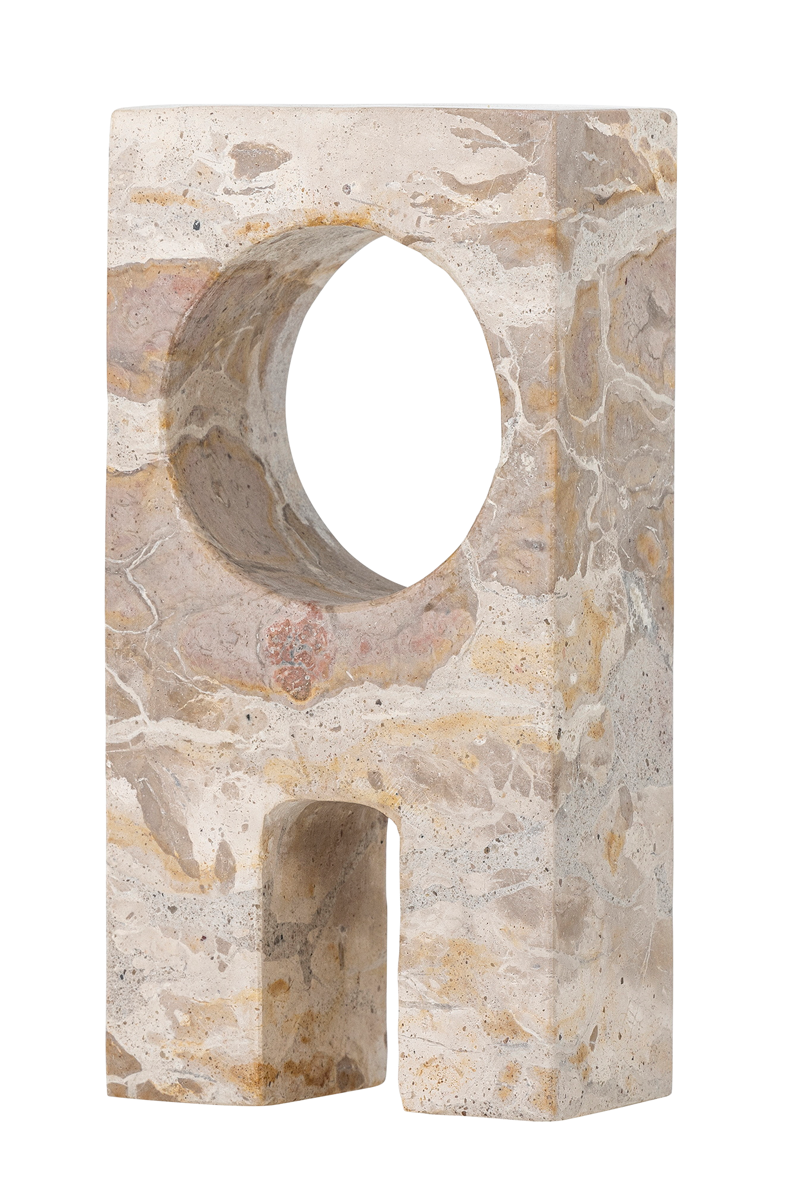 Aoxi deco från bloomingville är tillverkad av marmor och har ett modernt, grafiskt utseende med en cirkulär utskärning. De naturliga variationerna i materialet gör varje deco unik. En skulptural detalj som ger karaktär till din inredning.