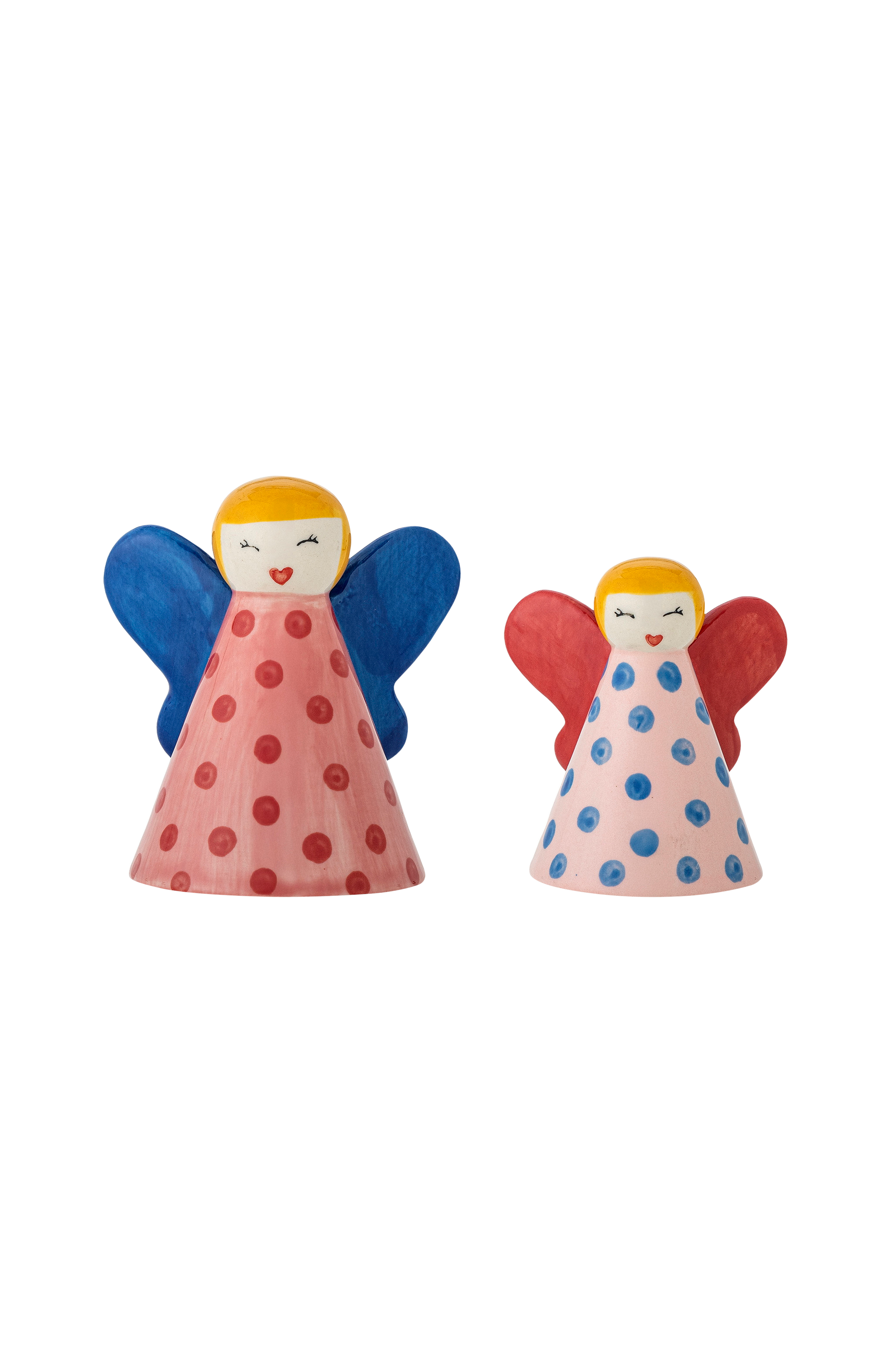 Caramella Deco från Bloomingville är ett charmigt och färgstarkt tillskott till ditt hem. Setet består av två änglar med handmålade detaljer, vilket gör var och en helt unik. De är perfekta för att dekorera ditt julbord eller för att ge en mysig touch till ditt utrymme året runt, oavsett var du placerar dem. Mått: L7xH8xW6/L9xH10xW7 cm , Set om 2
