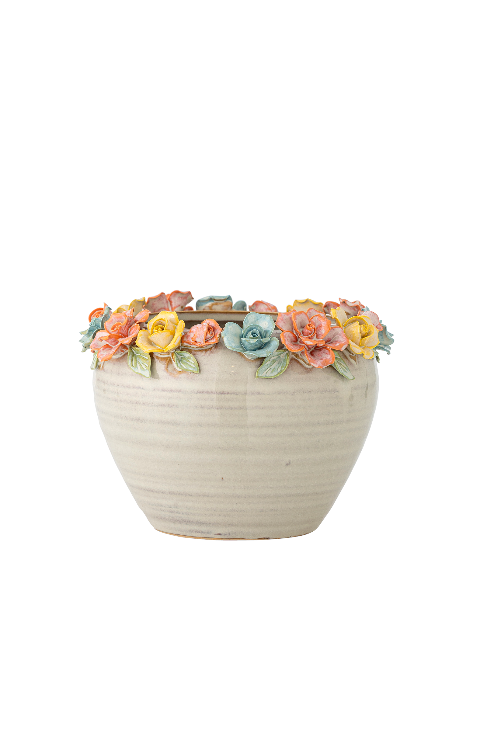 Blomkrukan eanna från creative collection är tillverkad i stengods och dekorerad med en handmålad kant för en botanisk och charmig look. Små variationer i penseldragen kan förekomma, vilket gör varje blomkruka unik.