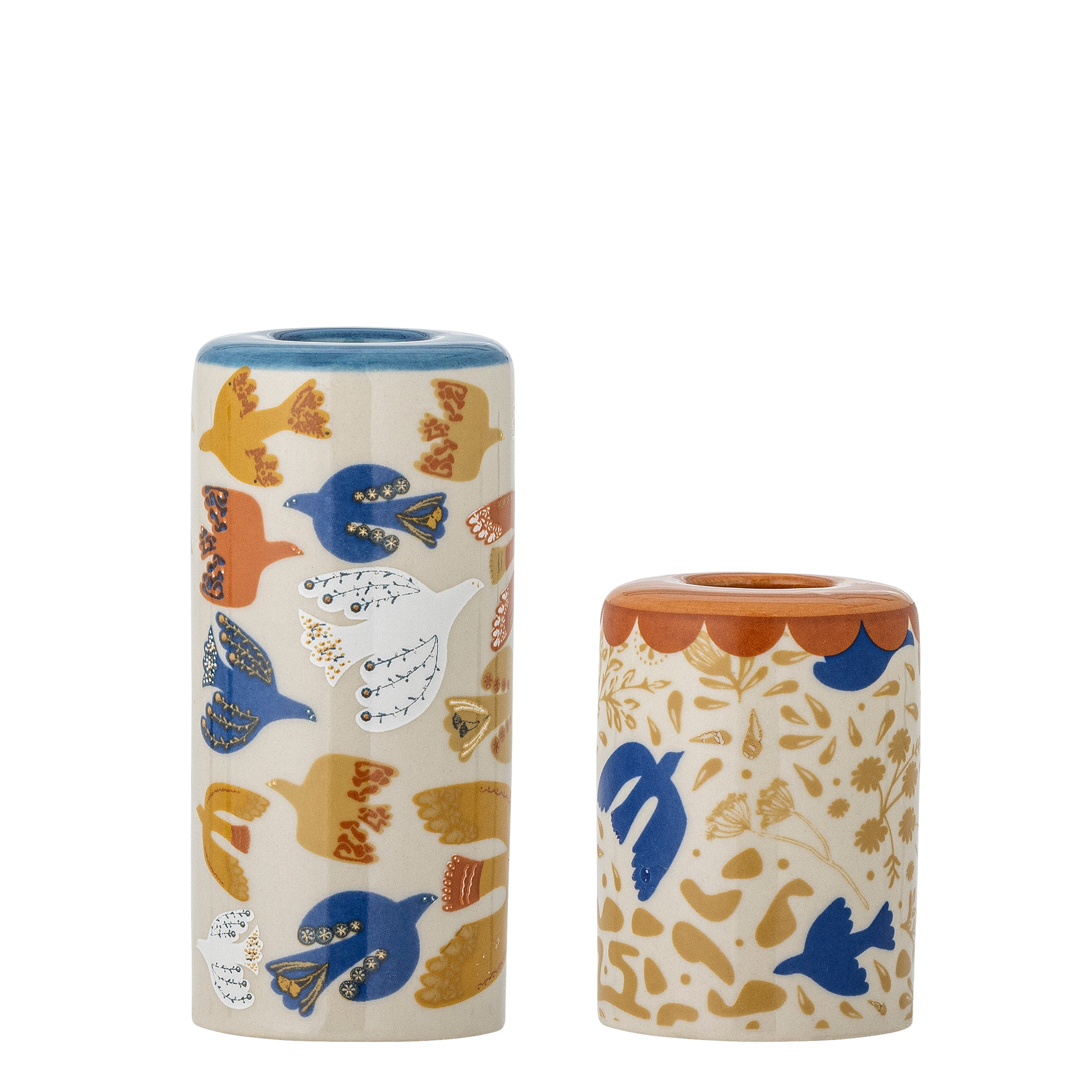 Jubileumsljusstakarna från bloomingville kommer i ett set om två och är tillverkade av stengods med ett grafiskt, tryckt motiv. De olika höjderna och den illustrativa designen skapar ett levande och dekorativt uttryck - vackert både tillsammans och var för sig.