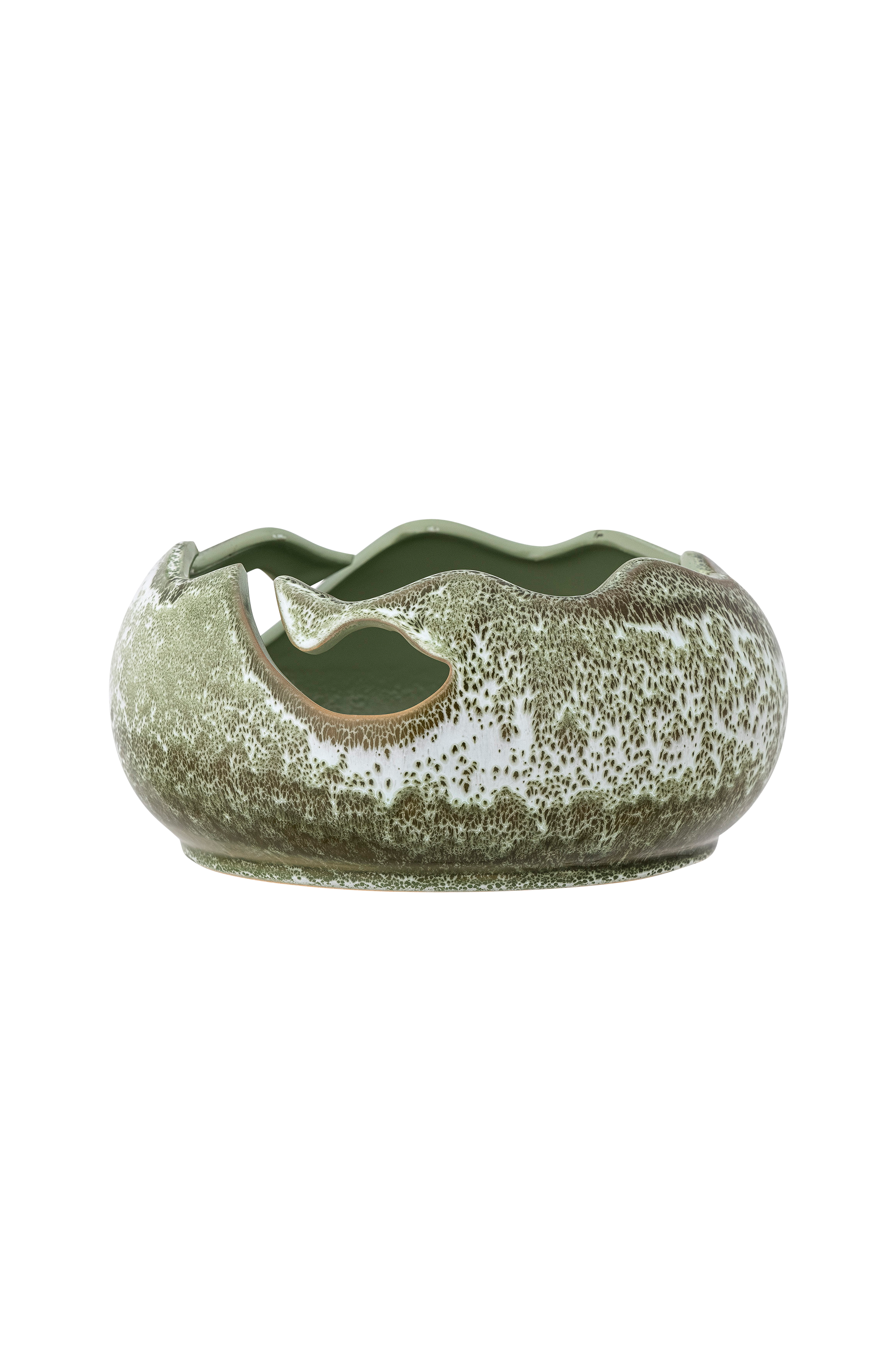 Skålen leonas från bloomingville är både dekorativ och utmärkt för förvaring och visning av mindre föremål. Designen gör den också perfekt för att hålla garn när du stickar. Den har en unik form och glasyr i underbara gröna färger. Den varierar i glasyr och färg. D25,5xh12 cm
