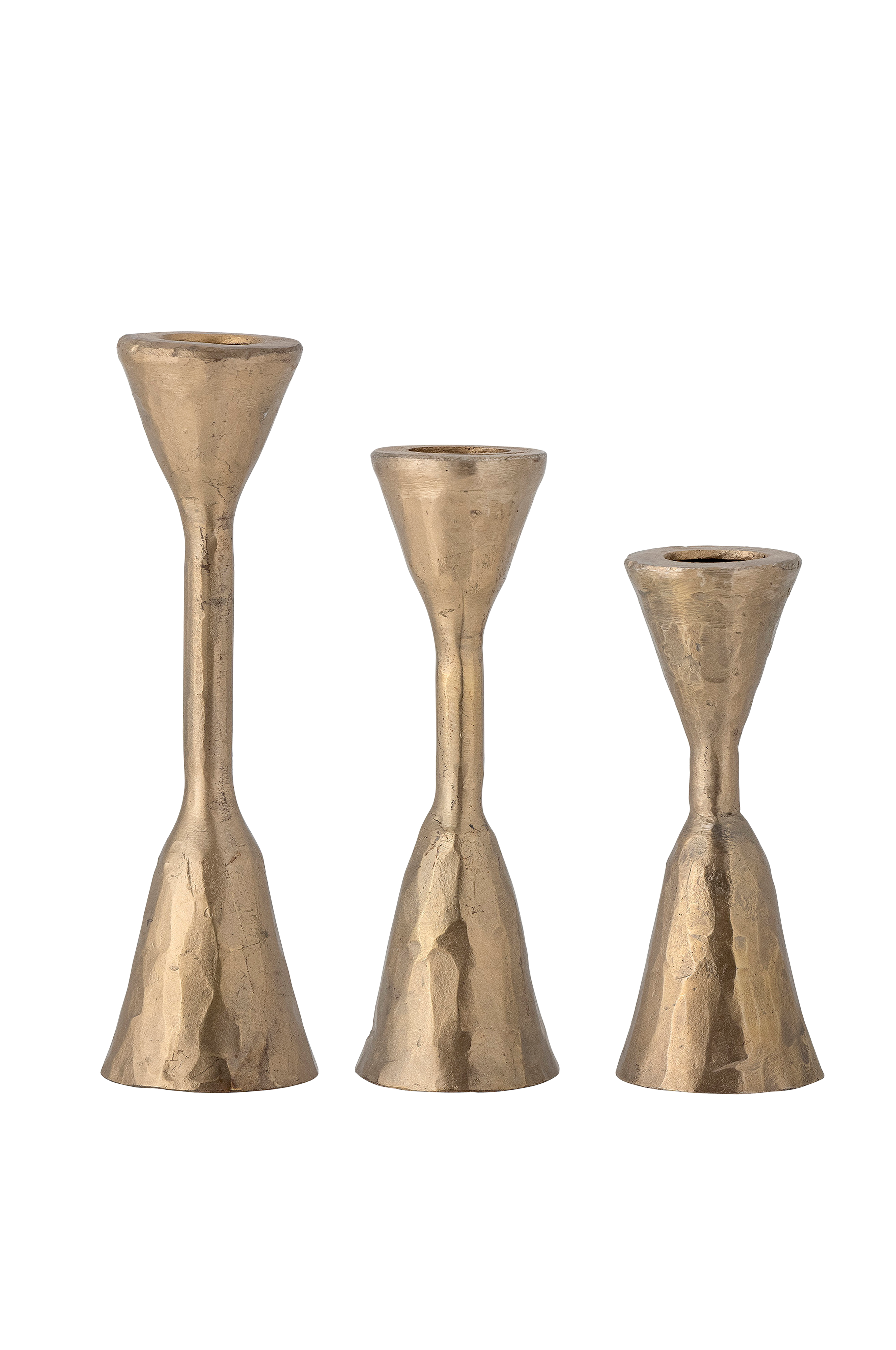 Eloisa ljusstake från Creative Collection är en uppsättning med tre handhamrade ljusstakar av järn i mässingsfärg. De olika storlekarna skapar en livfull och harmonisk känsla. D5xH17/D4,5xH14,5/D5xH12,5 cm, 3 st.
