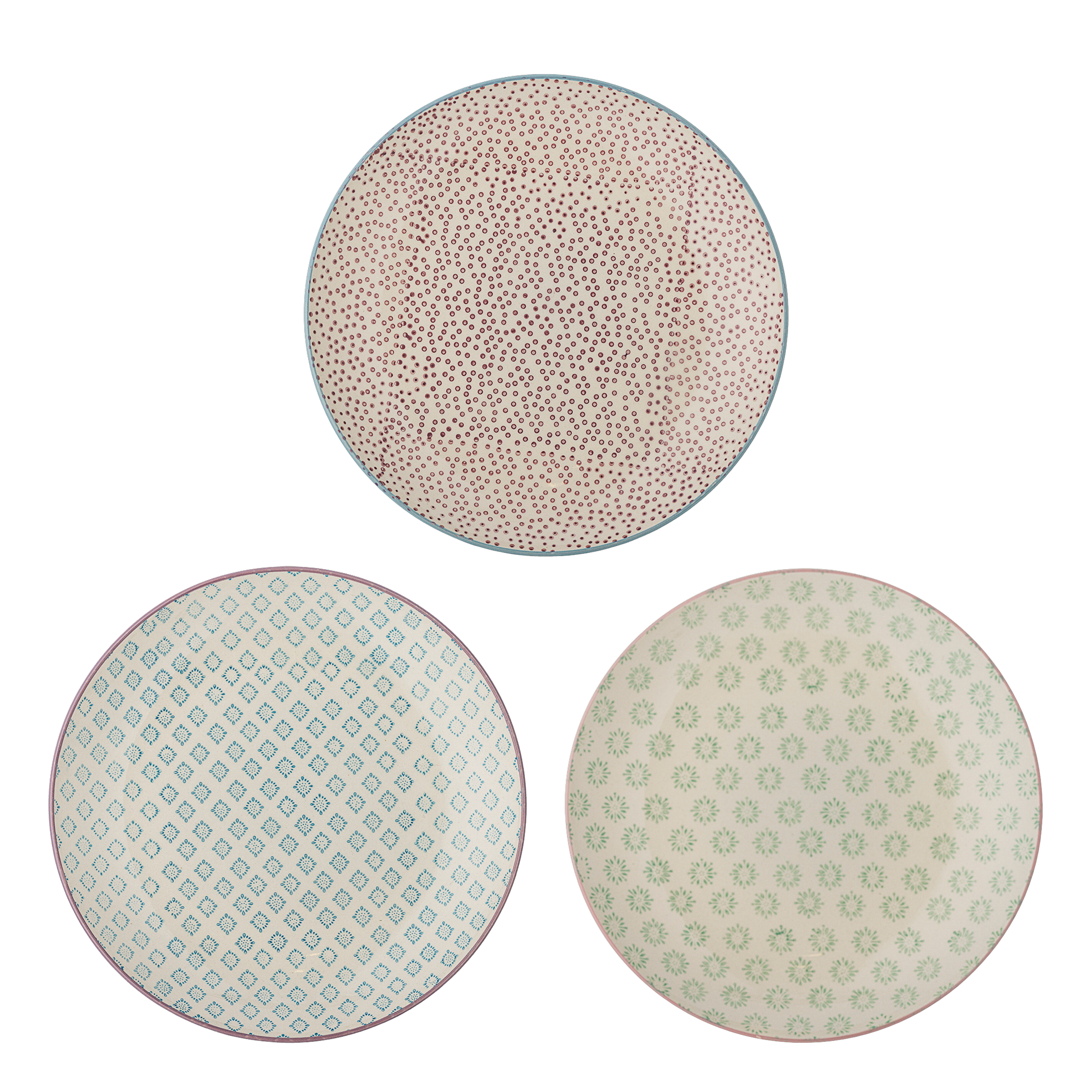 Patrizia-tallrikarna från bloomingville kommer i en uppsättning om tre och är tillverkade av stengods. Tallrikarna har en livlig blandning av mönstrade mönster. Med mjuka former och handmålade detaljer ger de en lekfull och välkomnande touch till alla dukningar.