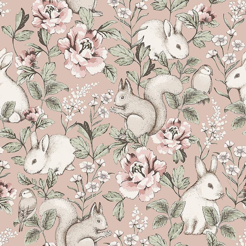 På barntapeten magic forest samsas söta ekorrar, kaniner och sparvar bland vackra blommor och gröna blad. Följ med dem på en nyfiken upptäcktsfärd i den magiska sagoskogen! Mönstret är skapat av newbie och sedan gravyrtryckt hos Boråstapeter. Varje rulle är 10,05 m. Bredd 53 cm. Mönsterpassning 53 cm med rak passning. Trycks i Sverige på ett non-woven material. Tapeten är easyup-märkt, vilket innebär att du applicerar limmet direkt på väggen och du behöver inte grundmåla före.