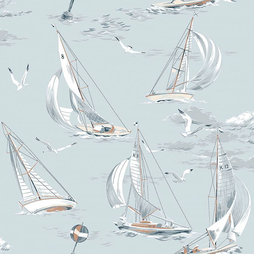 Tapeten sailboats pryds av segelbåtar som kappseglar i frisk vind. Mönstret är hämtat från Boråstapeters stora mönsterarkiv. Varje rulle är 10,05 m. Bredd 53 cm. Mönsterpassning 53 cm med förskjuten passning. Trycks i Sverige på ett non-woven material. Tapeten är easyup-märkt, vilket innebär att du applicerar limmet direkt på väggen och du behöver inte grundmåla före.