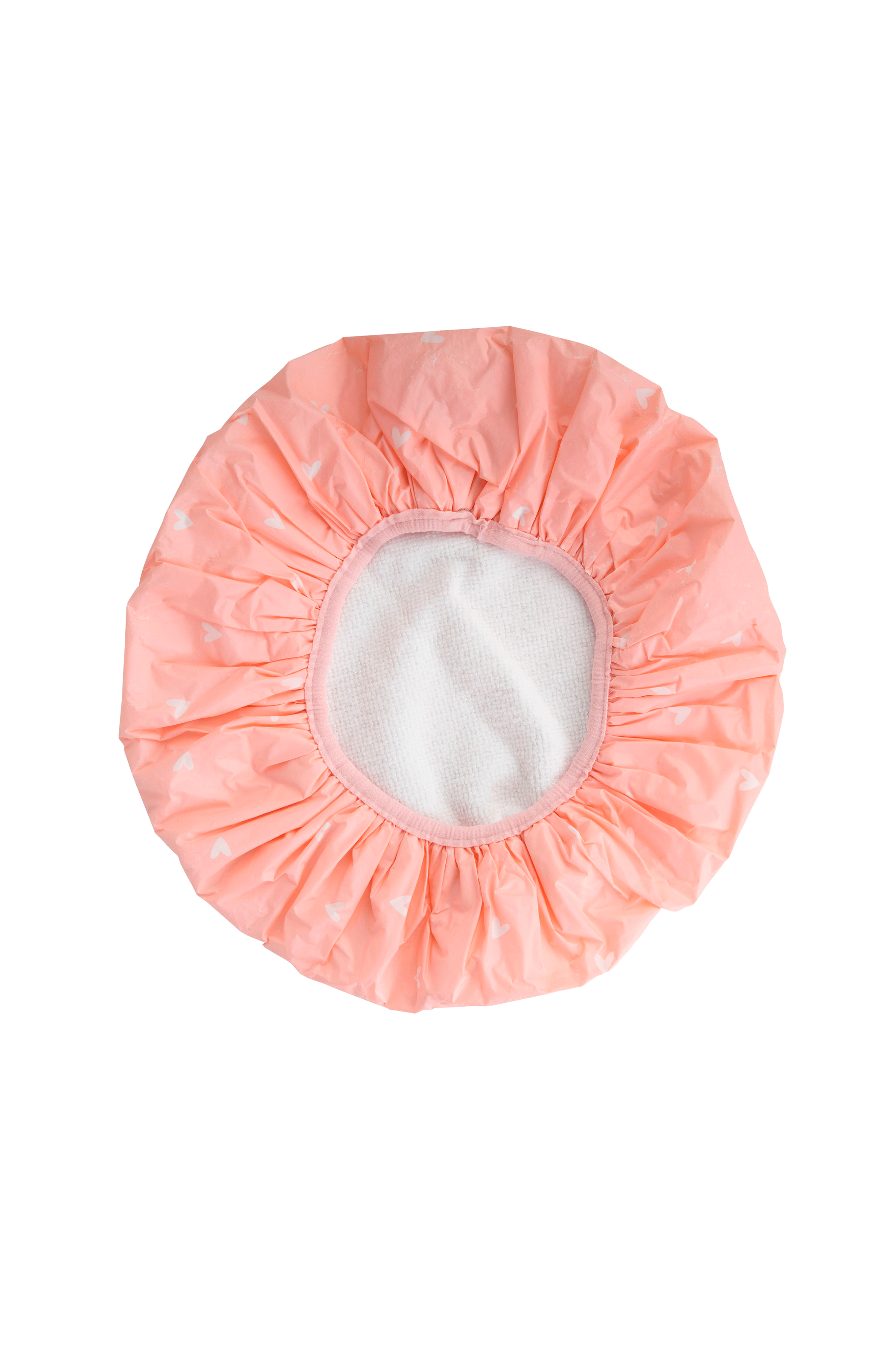 Vändbar duschmössa med hjärtan har en ultramjuk mikrofibersida som är skonsam mot håret och tillsammans med den vattentäta sidan är den idealisk för att hålla håret torrt i duschen.