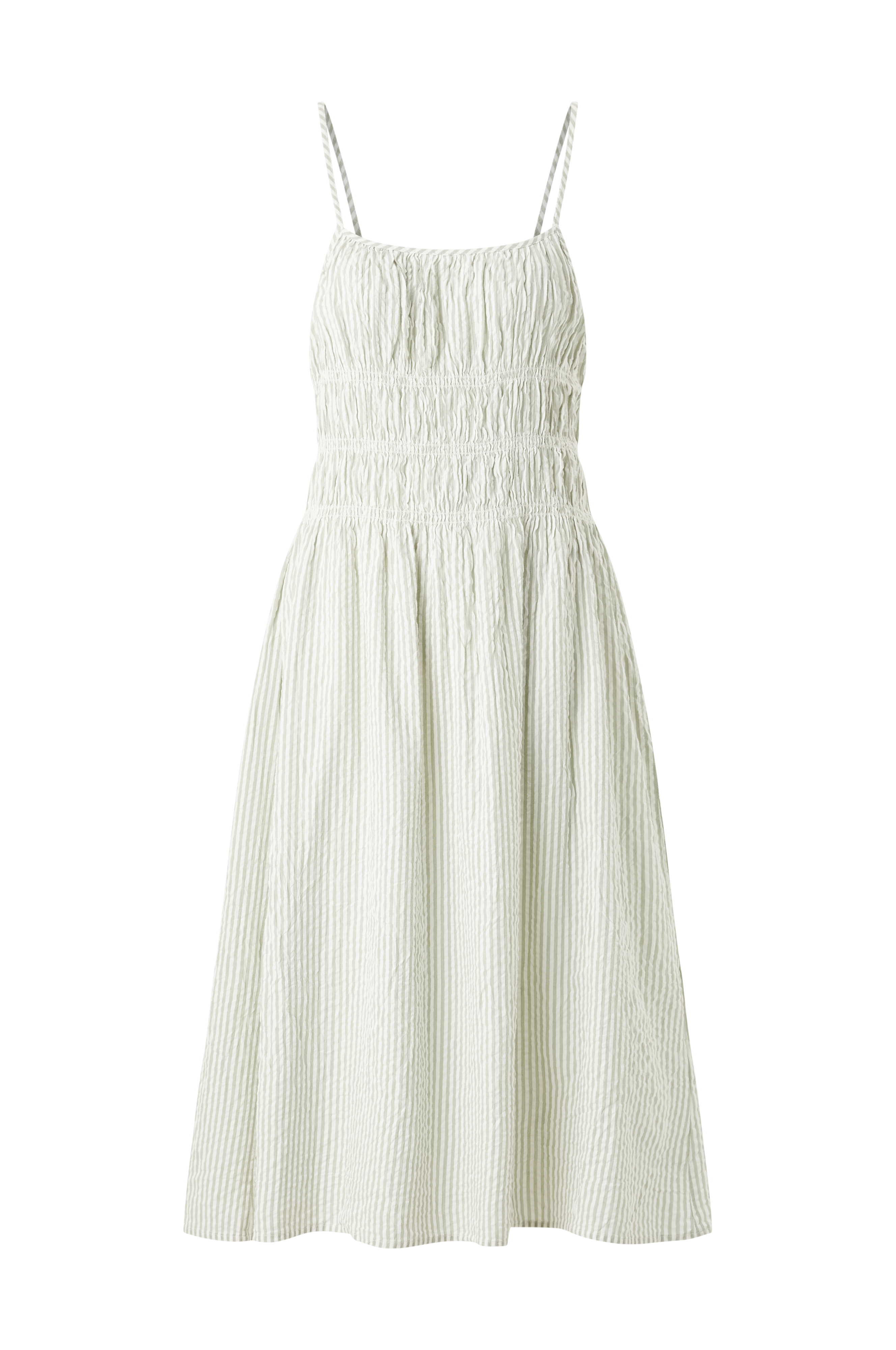 • Ärmlös klänning i seersucker• Smala, justerbara axelband• Smockad överdel• Längd: 119 cm i storlek S