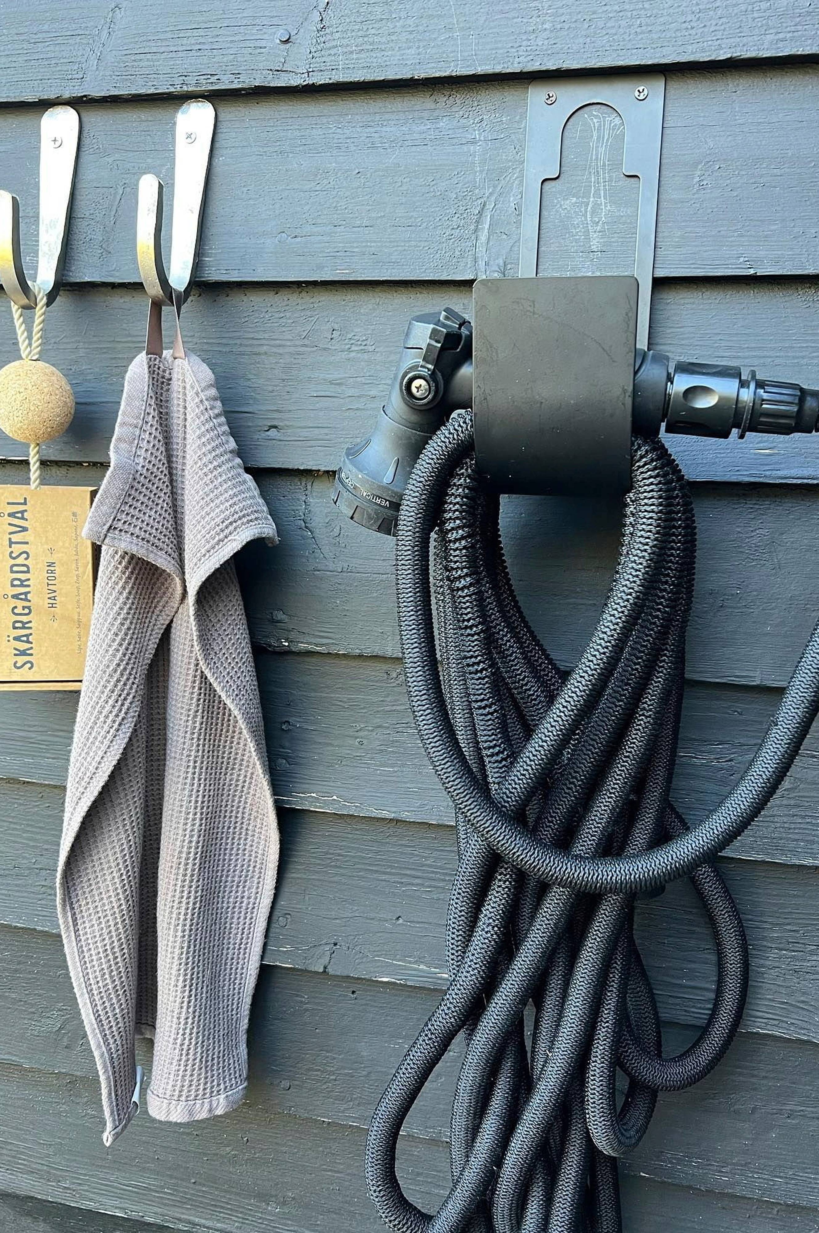 "Jag ville skapa en vattenslangshållare som är både funktionell och stilfull. Den matta svarta finishen ger en touch av elegans och håller samtidigt din slang organiserad och lättillgänglig." – Anna