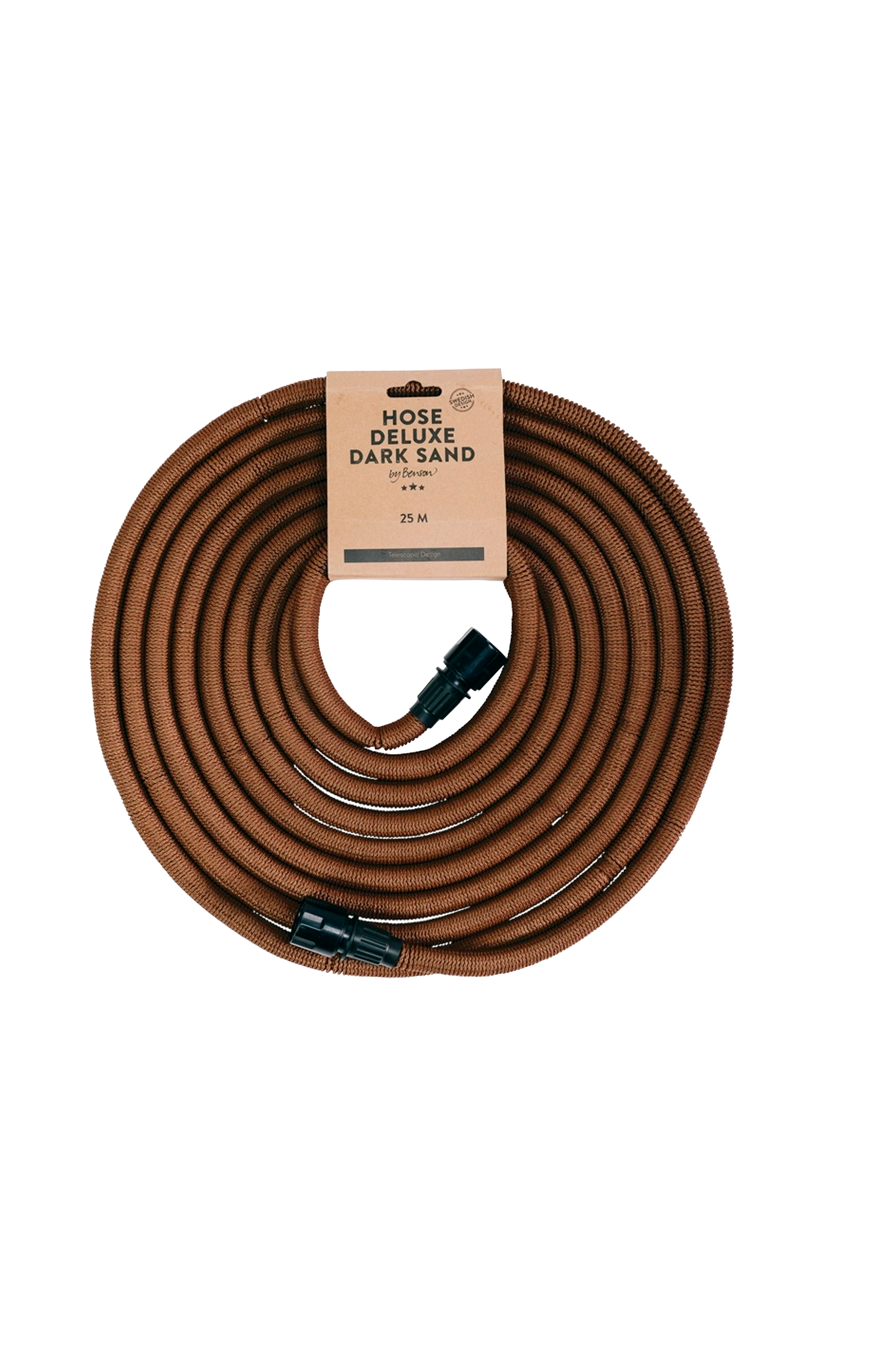 trädgårdsslang deluxe är en prisbelönt produkt som kombinerar stil och funktionalitet. Den är tillverkad av textil och latex och skiljer sig från vanliga plastslangar. Den finns i tre längder (15 m, 25 m och 50 m) och fyra färger och smälter sömlöst in i din trädgård.