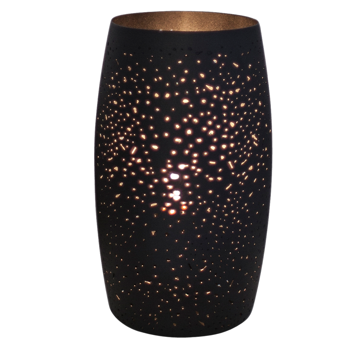 Colby bordslampa är en enkel metallfot i sandy svart finish med perforerade hål som gör det möjligt f ör ljuset att sippra ut och skapa en fin ljuseffekt. Hjöden är 26 cm.
