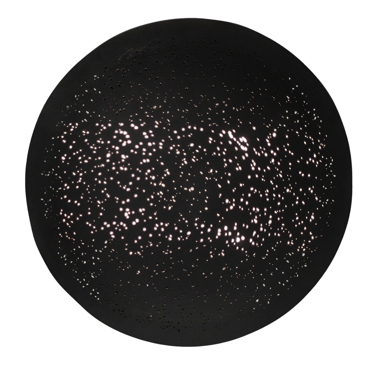 Colby är en vägglampa som ger wow-effekt. Lampan är rund med en diameter om 71 cm och tillverkad i svart metall med små perforerade hål som gör det möjligt för ljuset att sippra ut och skapa fina ljus effekter. Lampan är bestyckad med 4 st E14 ljuskällor och har en klar kabel för montering på vägg.