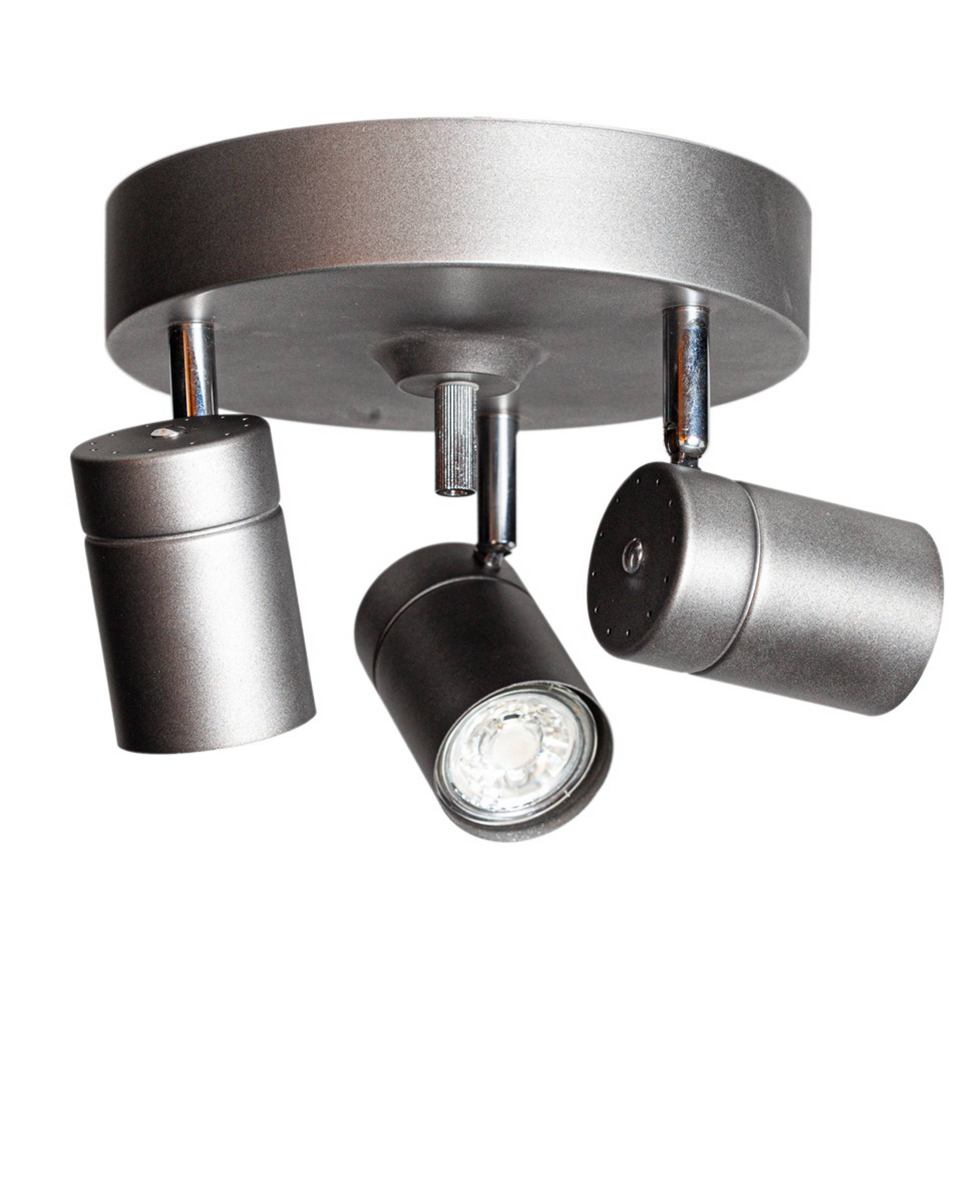 Correct är en 3-bulbs takspotlight i metall med justerbara huvuden. Lampan passar perfekt i hemmets alla rum med sin stilrena och diskreta design. Correct ceiling spotlight 3-bulb har en generöst tilltagen takkopp och kroksystem för enkel installation, och spotarna är justerbara för att ge dig en skräddarsydd belysning. För correct ceiling spotlight 3-bulb behöver du tre ljuskällor och vi rekommenderar att du köper dimbara led-lampor med gu10-sockel för att kunna höja och sänka ljuset som du vill och uppnå önskad ljuskvalitet. För att kunna dimma correct måste lampan vara ansluten till en dimmer. Lampan mäter 14 cm i höjd och har en diameter på 20 cm. Att ha en takspotlight kan underlätta på så många sätt då varje spot gör sitt jobb för att ge rummet accentljus. Lys upp tavlor, ett stilleben, rikta in dig på tv:n eller skrivbordet när du vill arbeta. Correct takspotlight är en praktisk produkt som passar i alla hem. Lampan finns i fyra färger; vit, svart, guld och stålgrå. Vilken är din favorit? Mått takkopp: h: 5 cm, ø: 13 cm