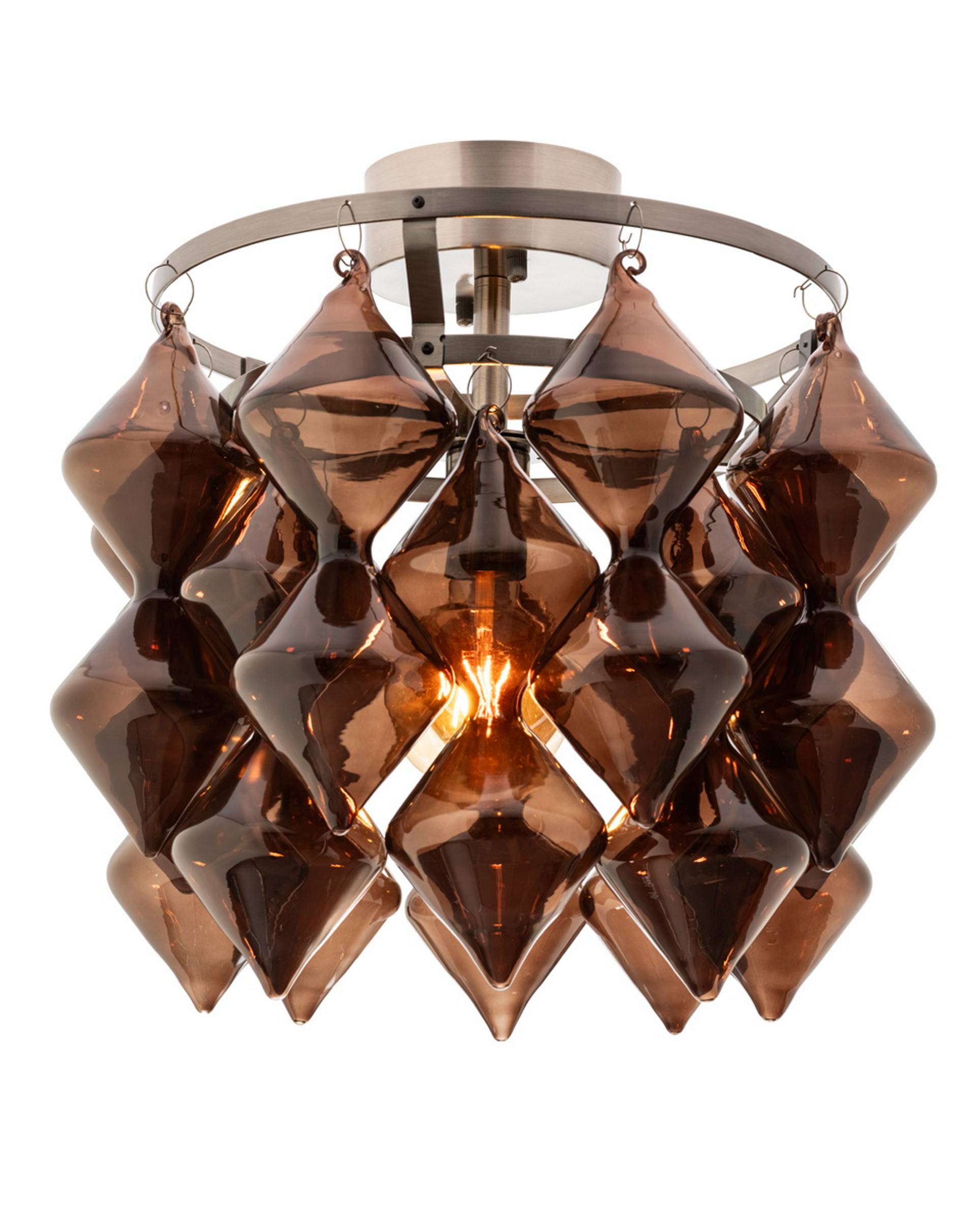 Taklampa gemma, designad av lisa hilland, är en elegant designlampa som passar perfekt i hemmet. Med sitt bruna glas följer lampan den senaste designtrenden och ger rummet en modern och sofistikerad känsla. Glasets nya formspråk gör att gemma sticker ut och blir ett iögonfallande element i rummet. Basen är i grå metall, vilket ger en fin kontrast till det varma glaset. Lampan är lämplig för flera rum, t.ex. hallen, sovrummet eller vardagsrummet. Dessutom finns glaset tillgängligt som reservdel, så att du kan behålla lampans skönhet under lång tid.