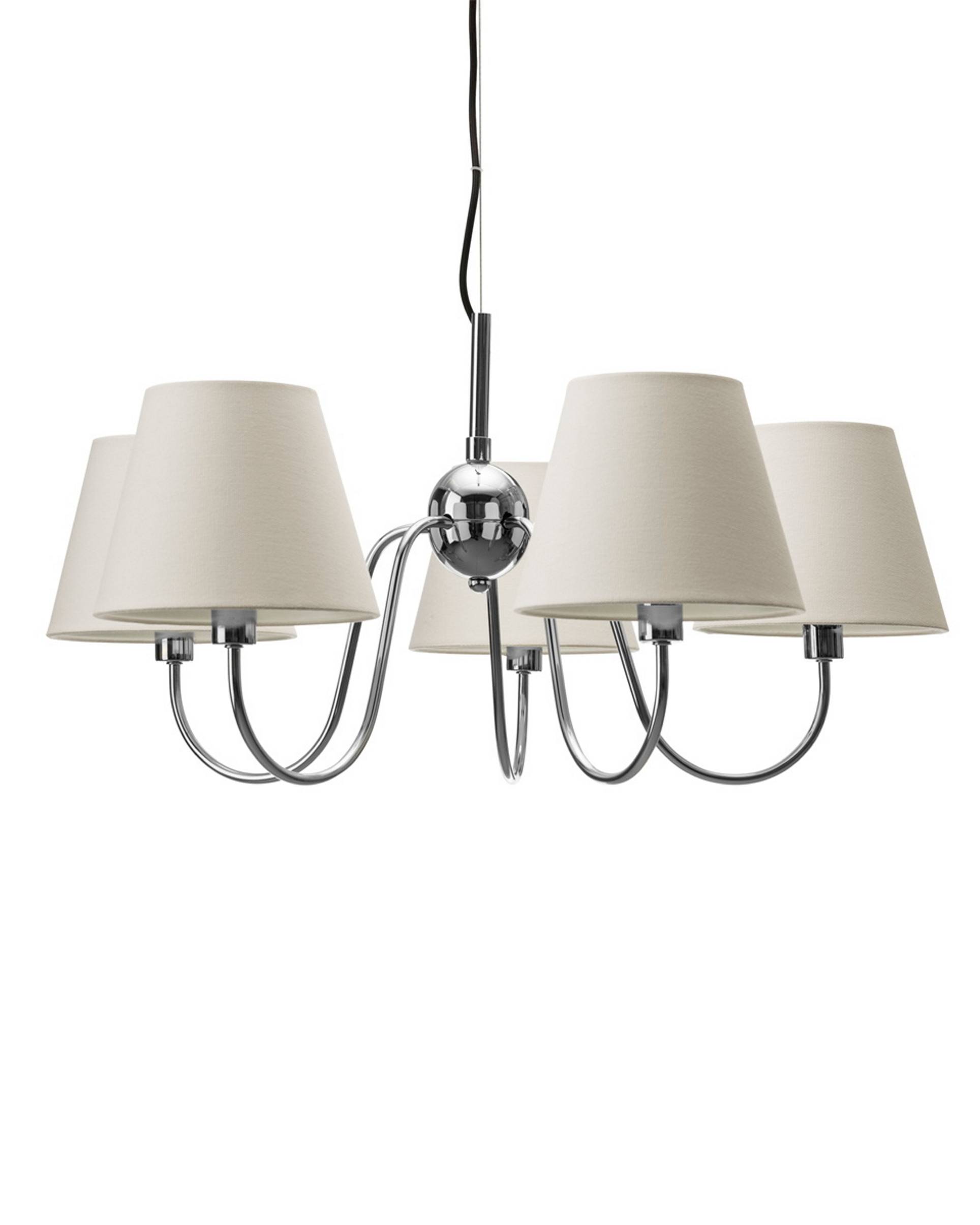 lynx lampan är tillverkad av metall och bomullsmaterial och har fem e14-socklar med en maximal effekt på 8 watt vardera. Den är utformad för inomhusbruk och kan dimmas när den kombineras med dimbara ljuskällor.antal ljuskällor: 5