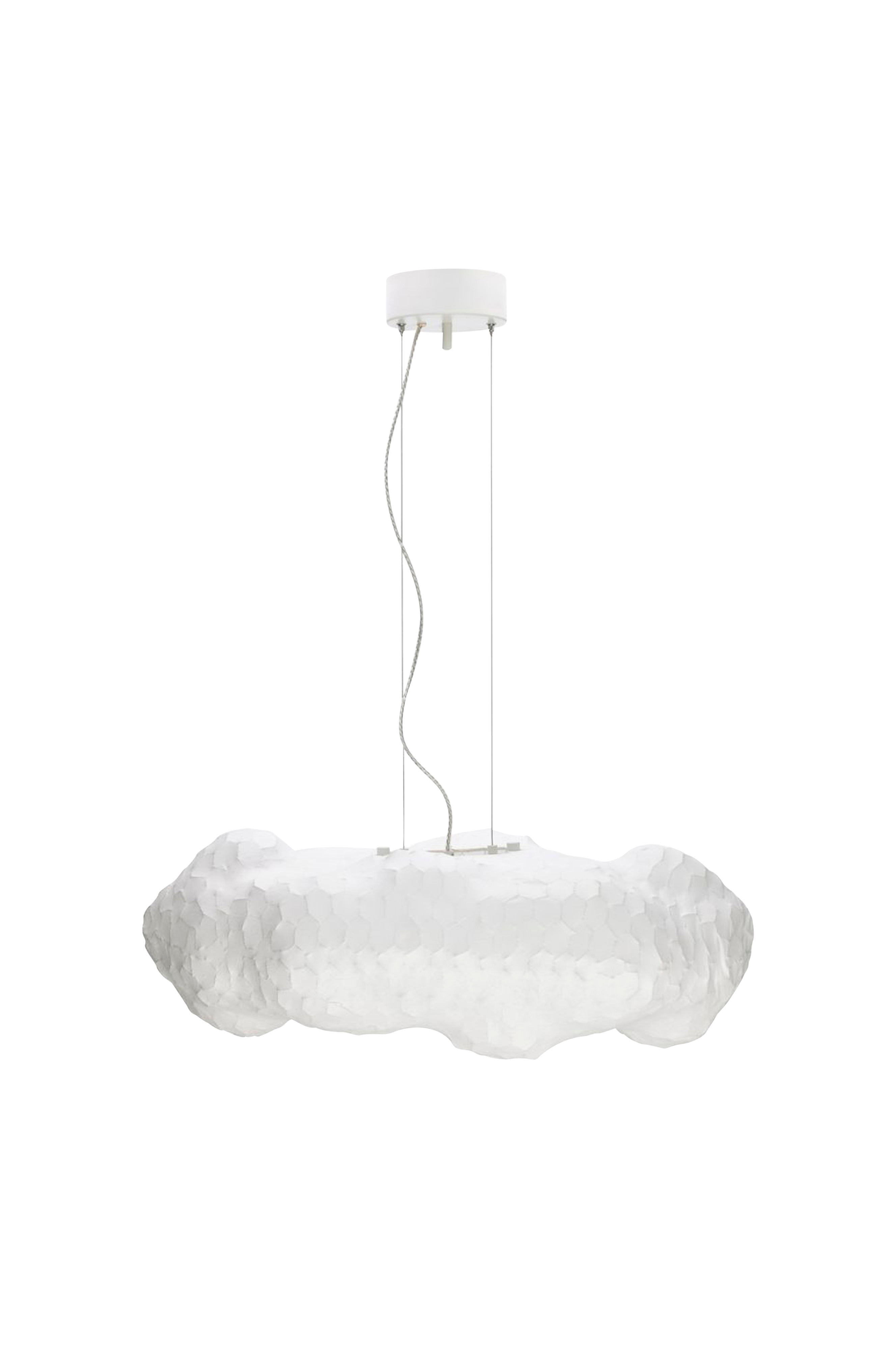 Nuevo taklampa - en svävande skönhet med mjuka former taklampan nuevo är en feminin och elegant fortsättning på vår populära lampa hayden. Med sin unika form, som skapats av ett nät format som ett drömlikt moln, ger nuevo ett mjukt och svävande uttryck till rummet. Den luftiga designen gör lampan lika vacker tänd som släckt och blir snabbt ett blickfång i ditt hem. Nuevo passar perfekt i sovrummet, vardagsrummet eller som en snygg detalj över matbordet. Den fungerar också otroligt bra i kluster - till exempel i en kontorsmiljö där man vill kombinera funktion med design och ge rummet en mer kreativ och livfull känsla. Lampans skärm är tillverkad av gjutplast, vilket ger den en lätt men hållbar struktur med en nästan textil känsla. Den drivs av 2 e27 led-lampor (max 8w), vilket gör den både energieffektiv och enkel att anpassa till önskad ljusstyrka. Nuevo är valet för dig som söker något utöver det vanliga - en lampa som kombinerar skulptural design med mjukhet och funktion.