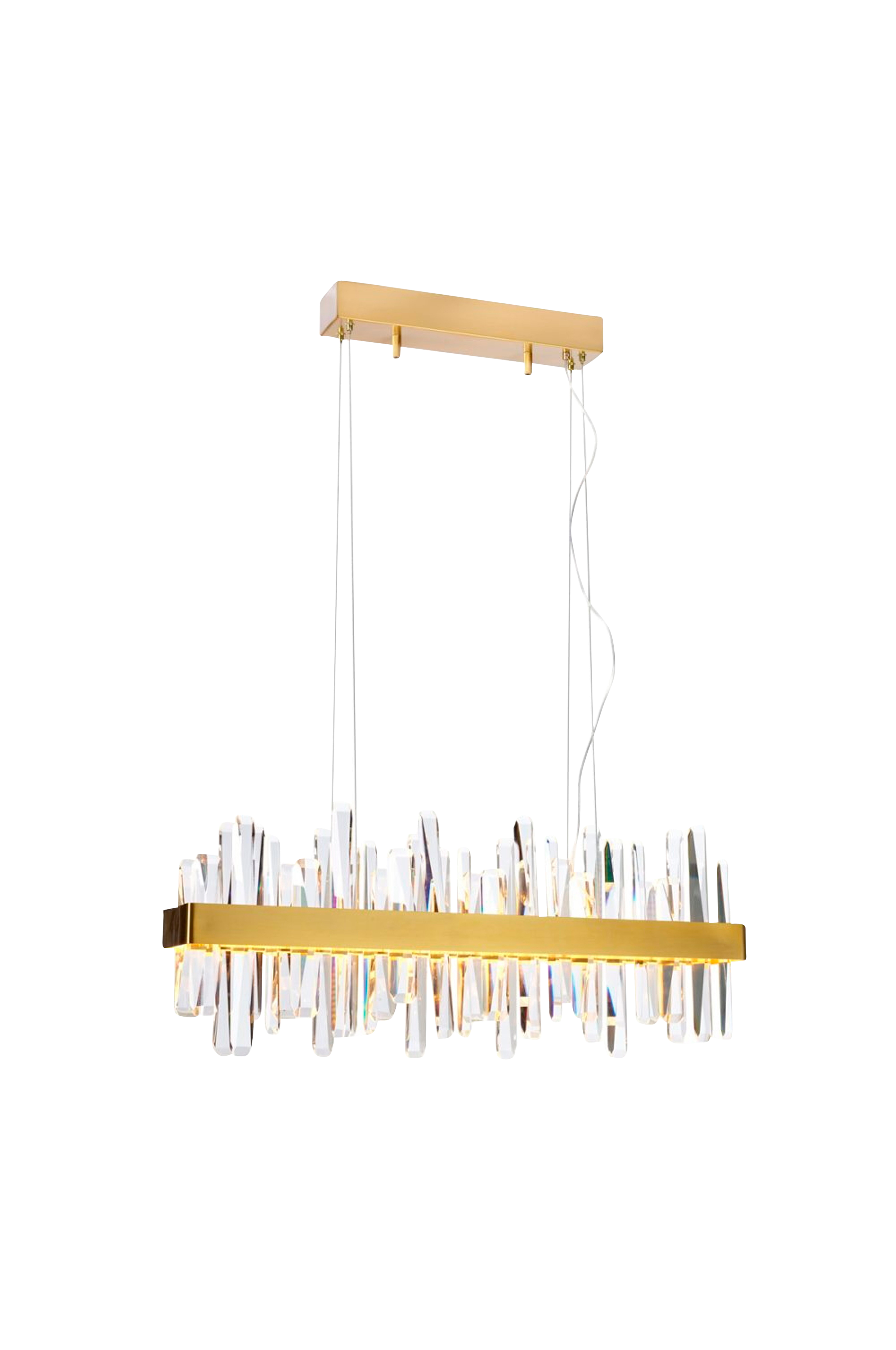 Pendellampa triumph bar - en exklusiv lampa med stil och funktion Pendellampa triumph bar är en exklusiv och elegant taklampa som kombinerar dekorativt glas med vackra detaljer. Den är ett riktigt blickfång och ger rummet en lyxig känsla, perfekt för dig som vill förhöja inredningen med något unikt och smakfullt. Lampan är utrustad med inbyggd dimbar led-belysning, vilket gör det enkelt att justera ljusstyrkan efter behov och humör - från funktionellt ljus till mjukt, stämningsfullt sken. Designen består av glasstavar i tre olika storlekar, vilket skapar ett dynamiskt och livfullt uttryck. Den asymmetriska formen ger lampan en klassisk men samtidigt modern touch, samtidigt som detaljerna tillför värme och elegans. Triumph bar är särskilt lätt att placera över ett matbord, där den verkligen kommer till sin rätt som både ljuskälla och dekorativ inredningsdetalj. Lampan hängs upp med vajrar som enkelt kan justeras för att få exakt den höjd som passar ditt utrymme bäst. Det gör installationen smidig och flexibel. Triumph bar är en populär modell som passar i både moderna och klassiska hem där kvalitet och design står i fokus.